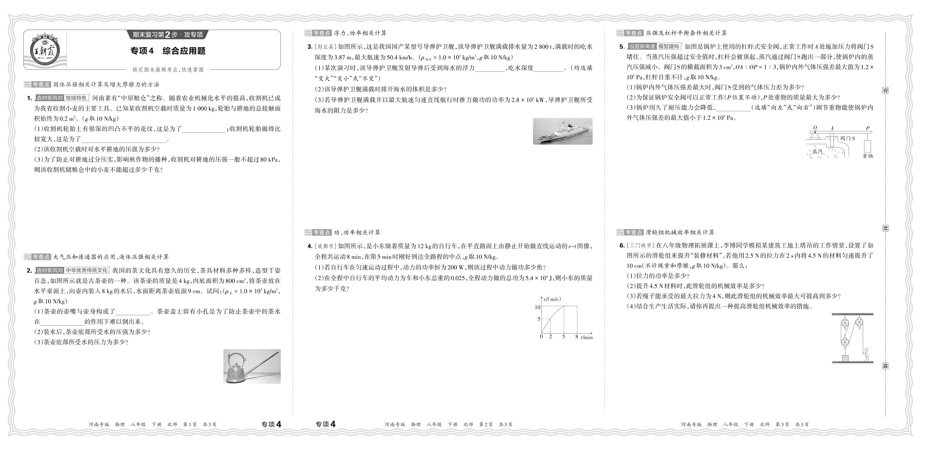 2024春下册八年级物理北师版 期末专项卷河南版·综合应用题【4】