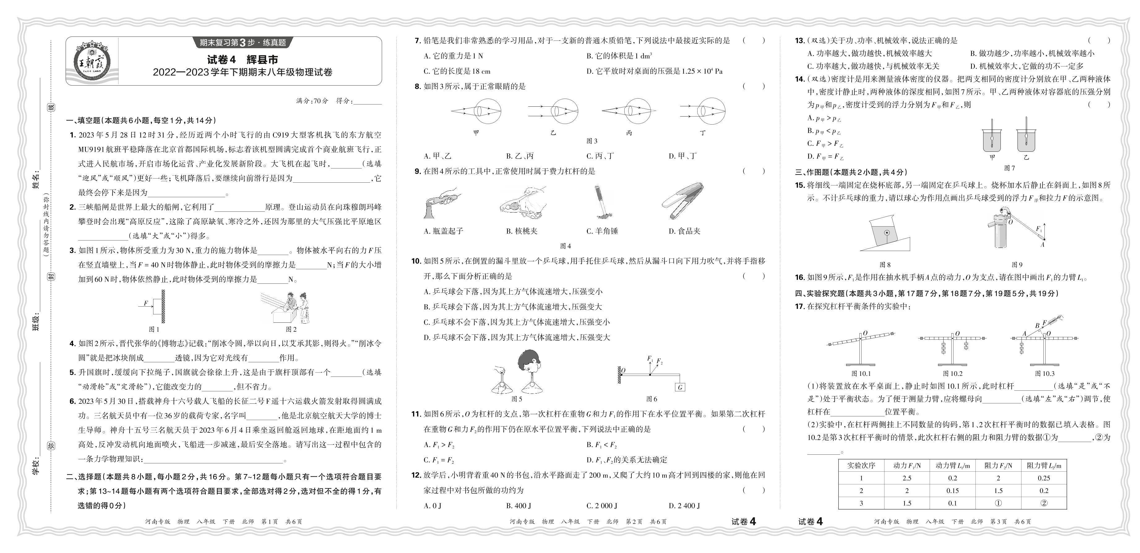 八年级物理北师版下册期末卷