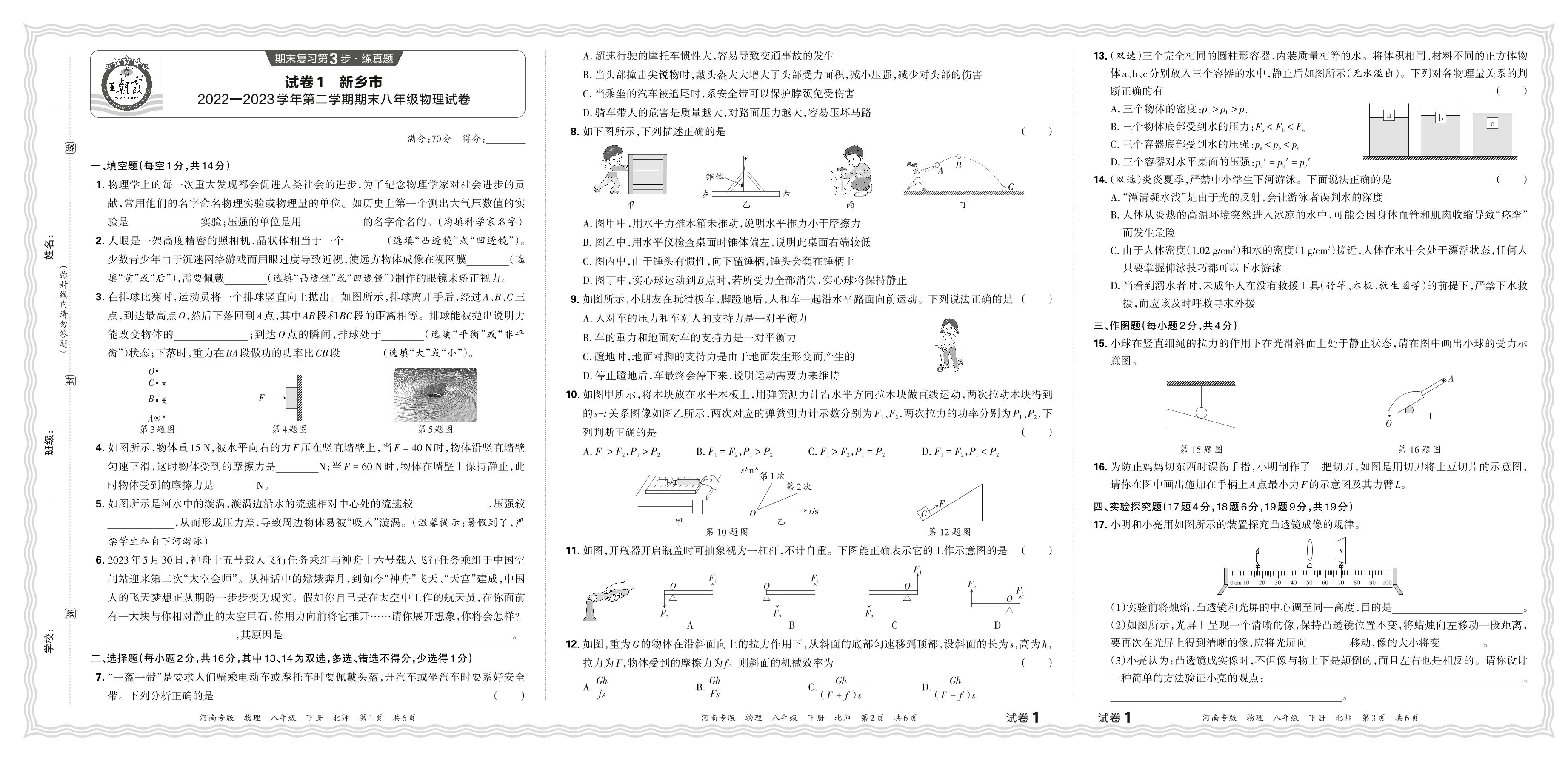 河南省新乡市2022-2023学年第二学期期末八年级物理试卷(北师版)【1】
