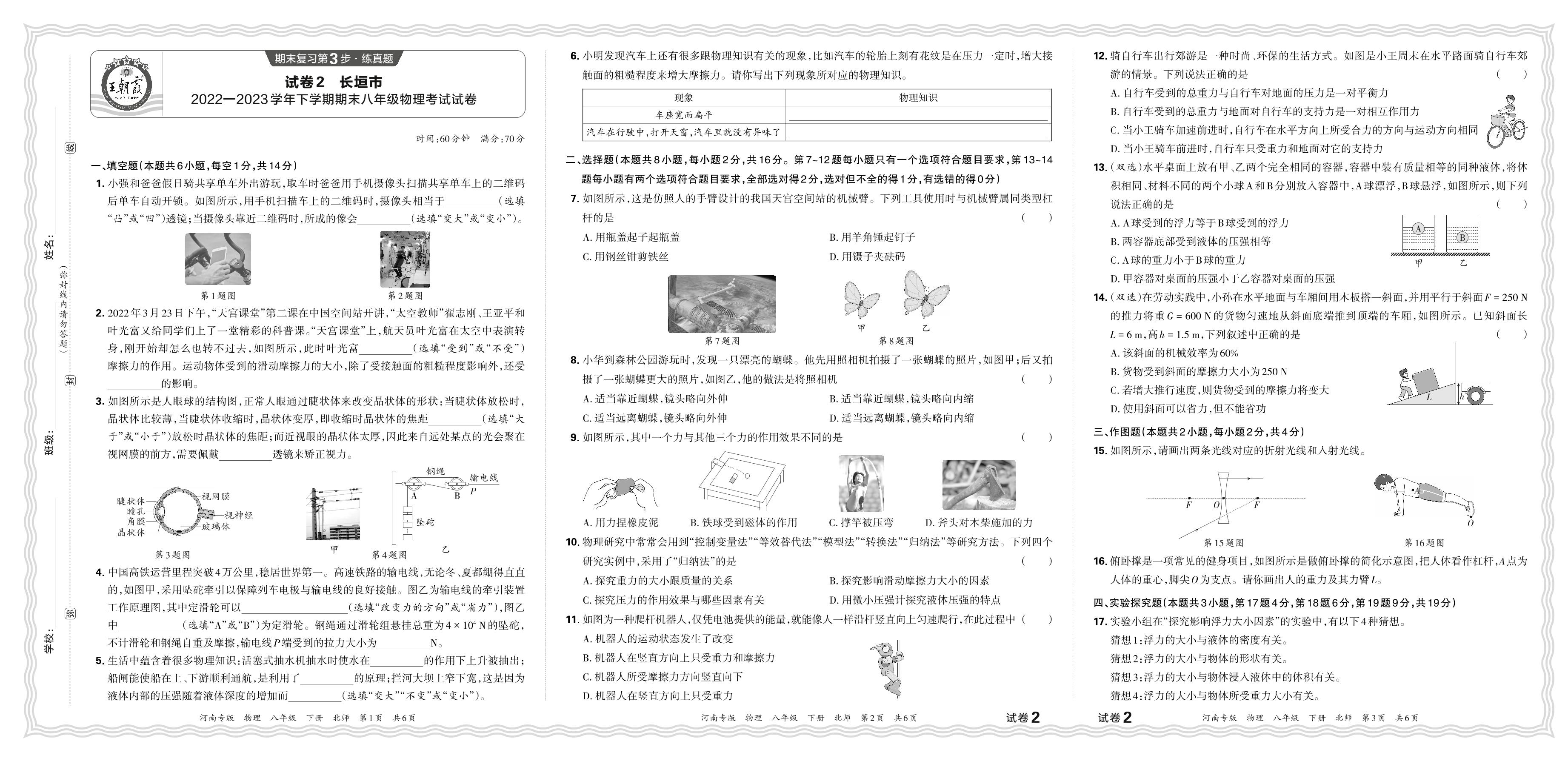 八年级物理北师版下册期末卷