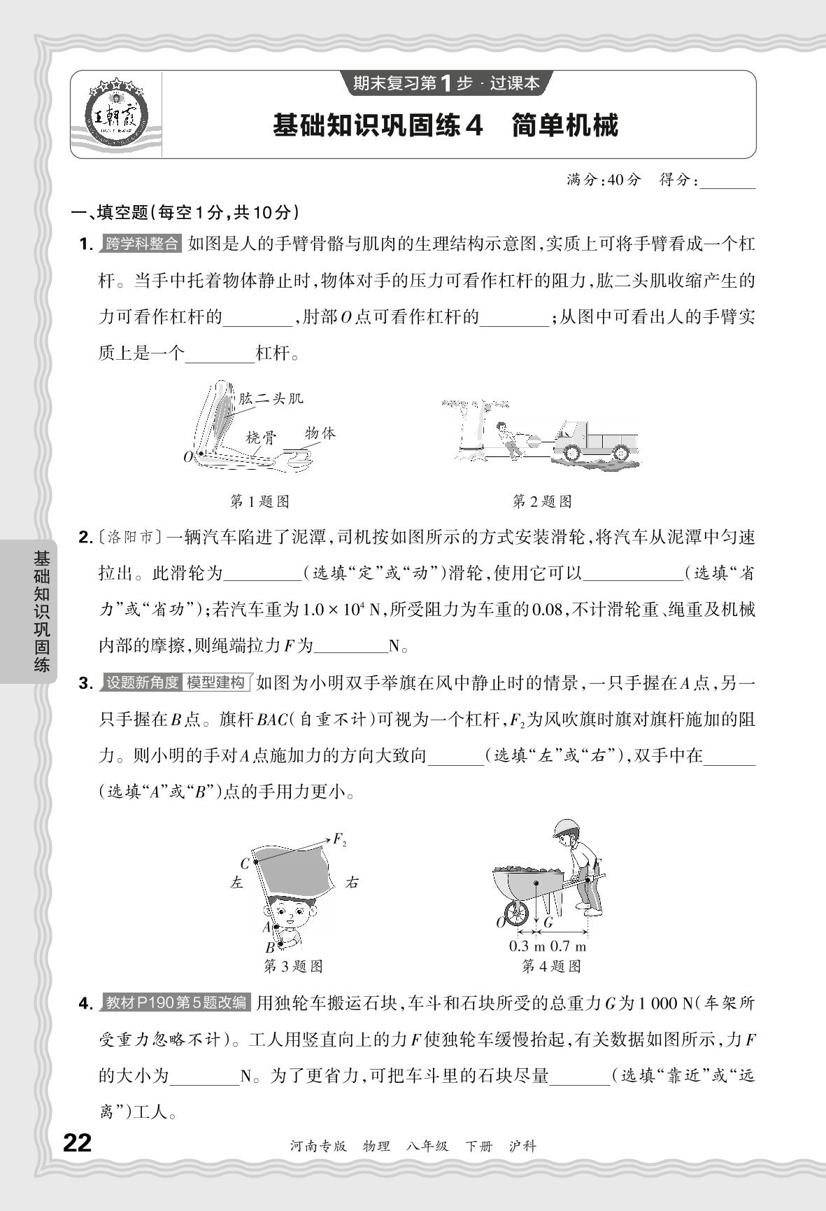 2024春下册八年级物理沪科版 期末过课本河南版·基础知识巩固练 简单机械【4】