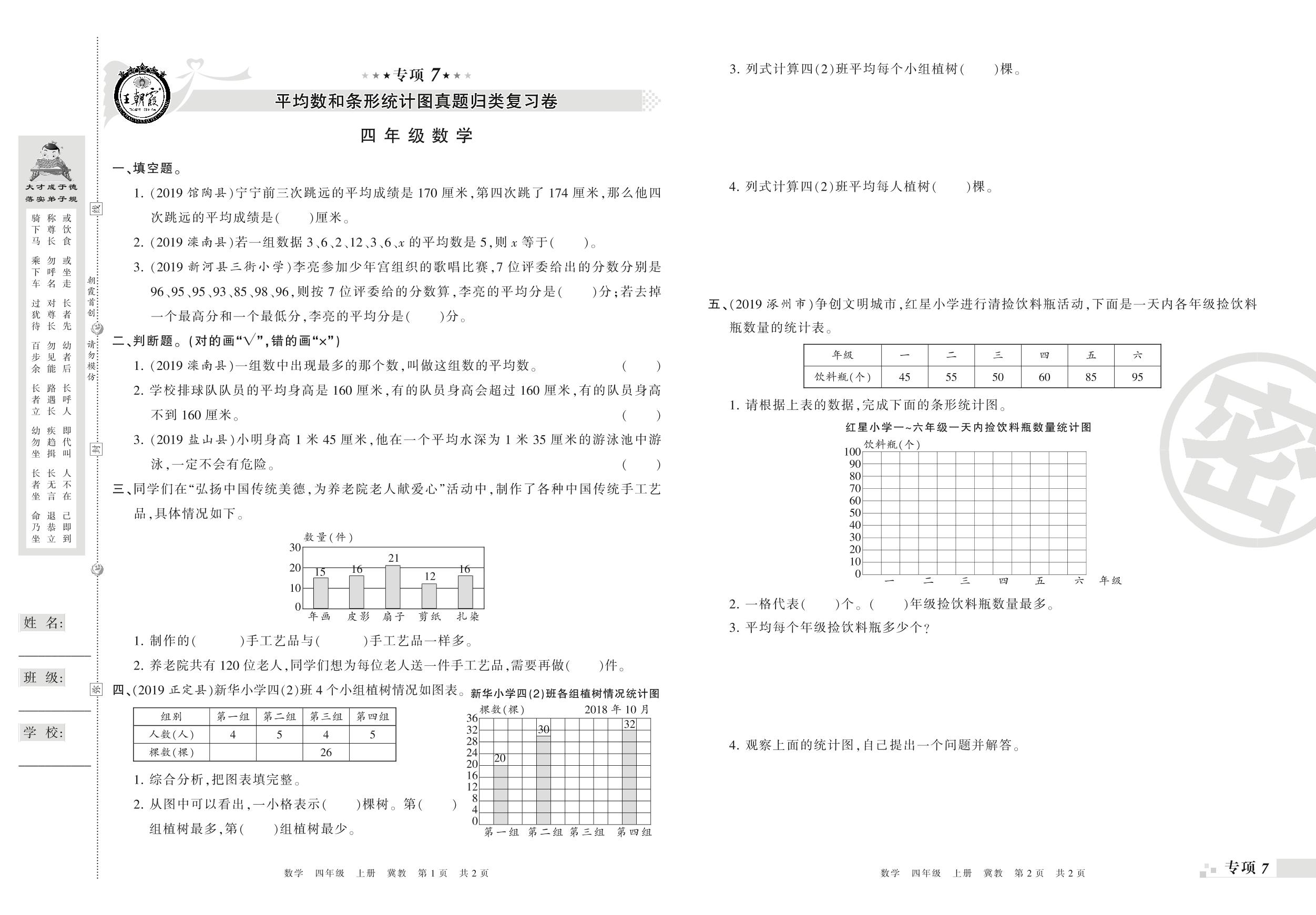 王朝霞期末专项卷——平均数和条形统计图、垂线和平行线及探索乐园真题归类复习四年级上册数学(冀教版)_R210804144646【0】