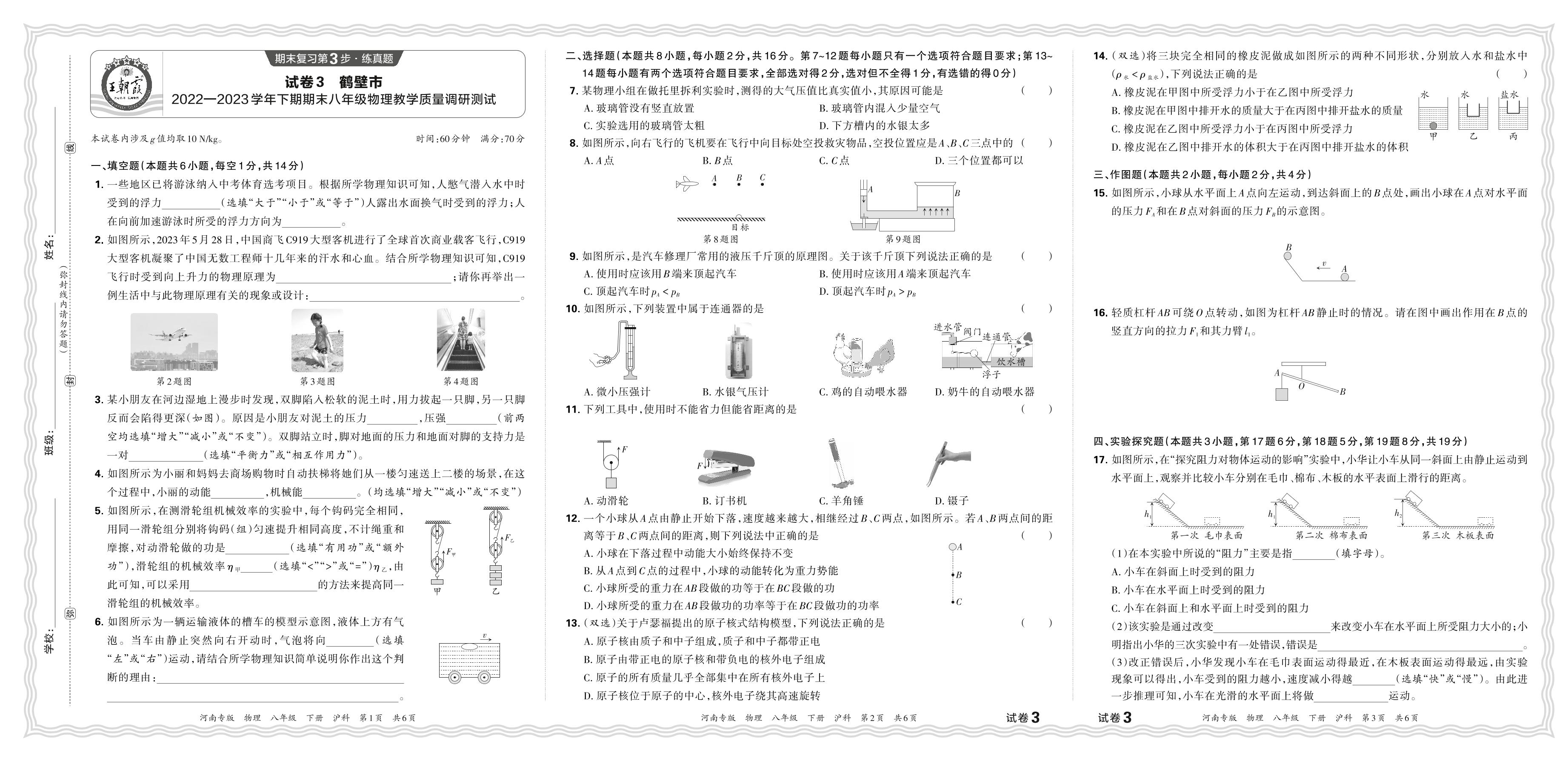 河南省鹤壁市2022-2023学年下期期末八年级物理教学质量调研测试(沪科版)【3】