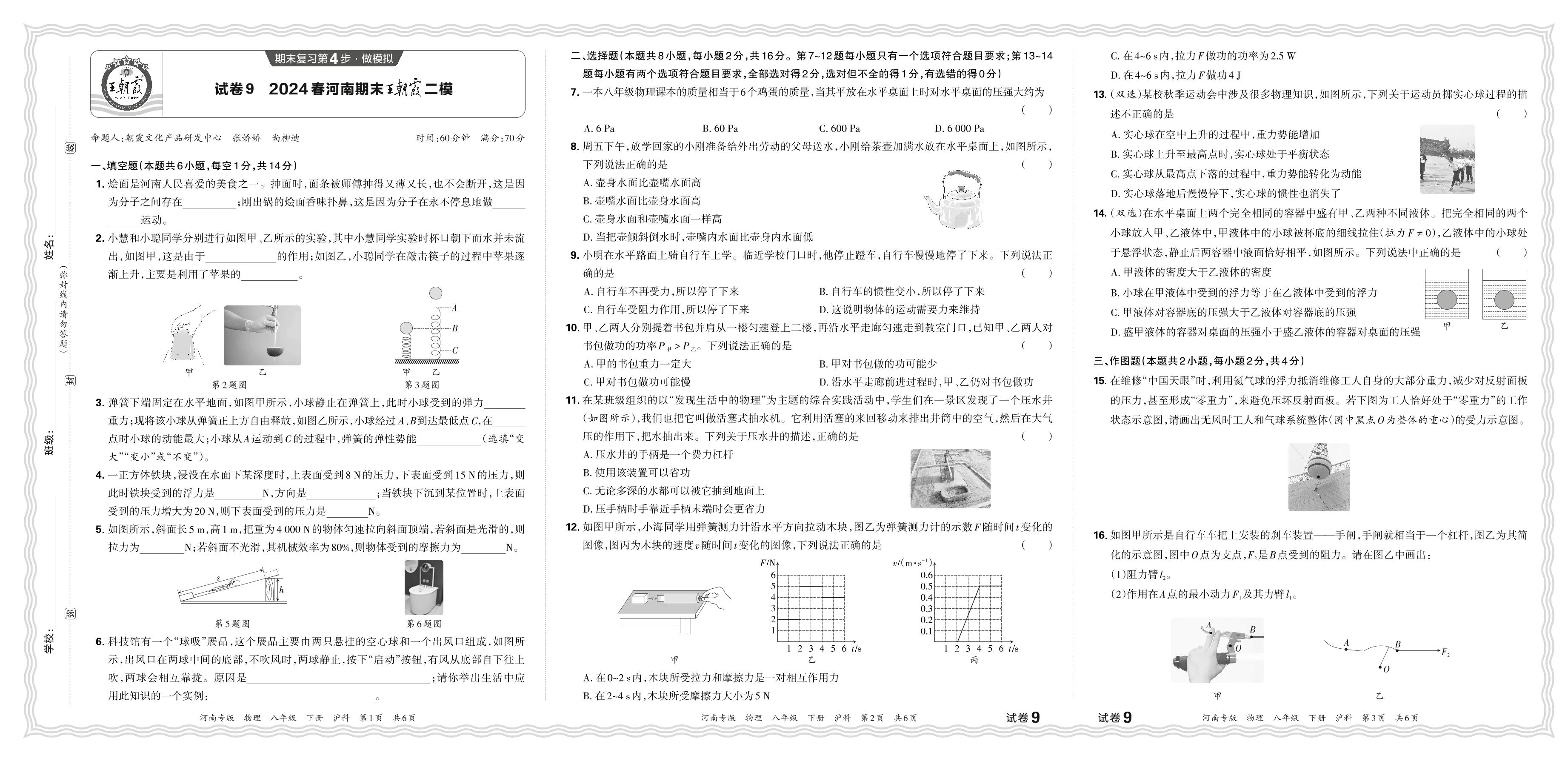 2024春下册八年级物理沪科版 河南期末王朝霞二模