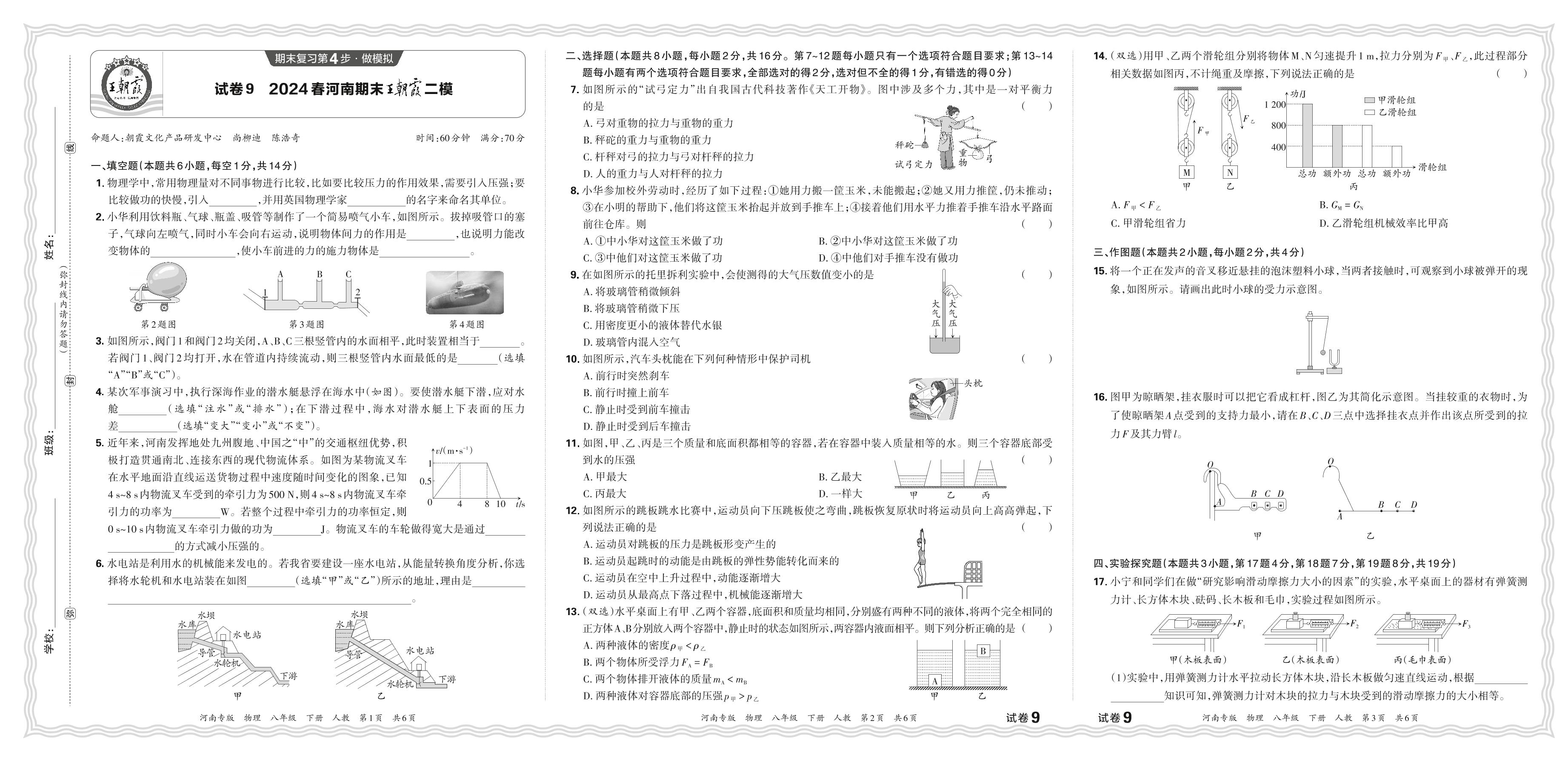 2024春下册八年级物理人教版 河南期末王朝霞二模