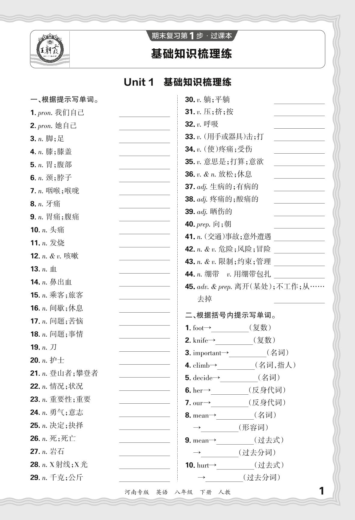 2024春下册八年级英语人教版 期末过课本河南版·Unit 1 基础知识梳理练