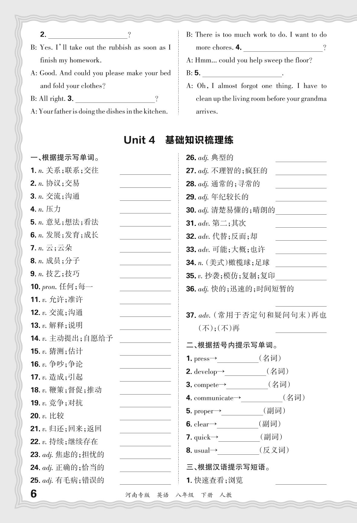 2024春下册八年级英语人教版 期末过课本河南版·Unit 4 基础知识梳理练