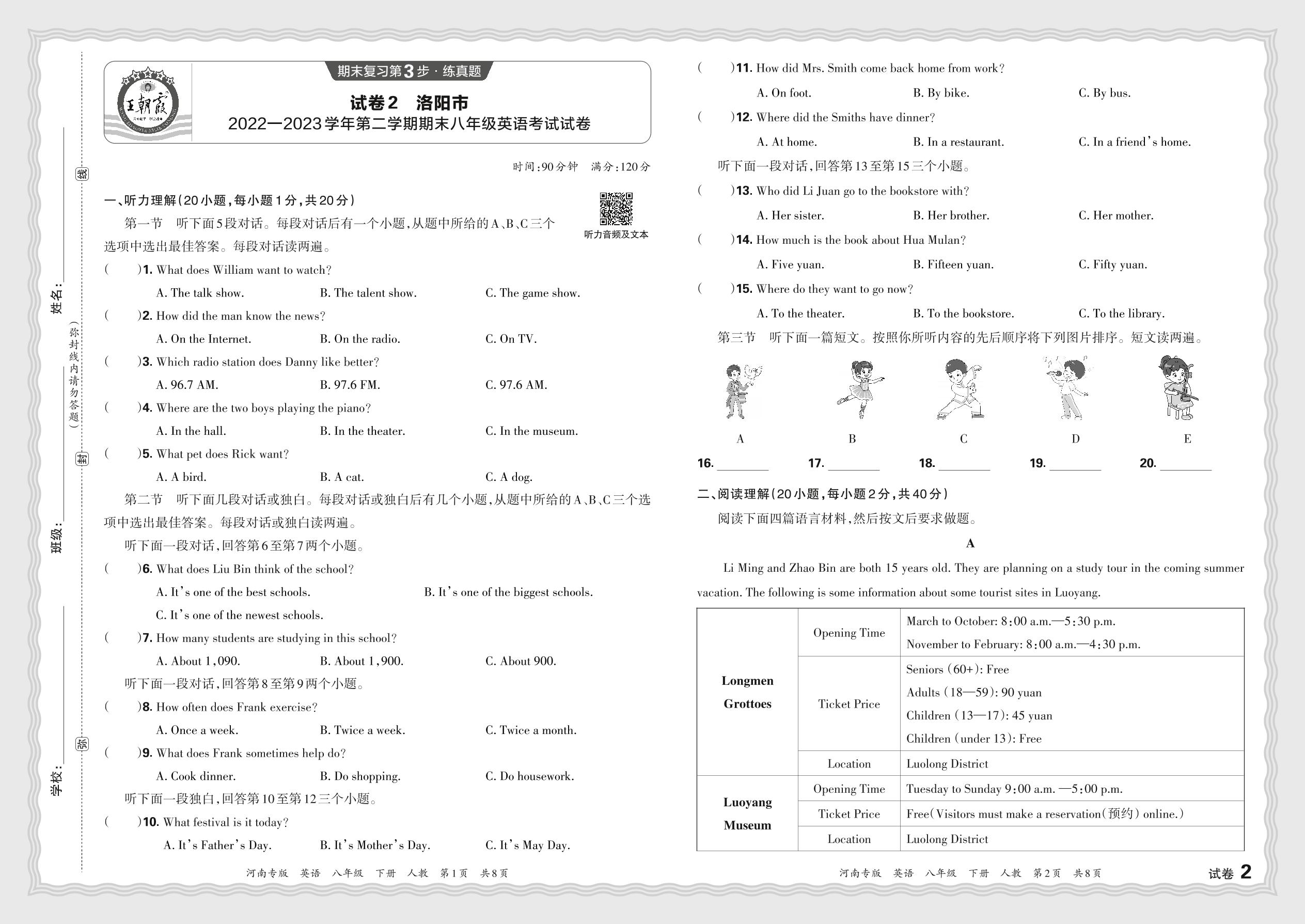 河南省洛阳市2022-2023学年第二学期期末八年级英语考试试卷(人教版)【2】