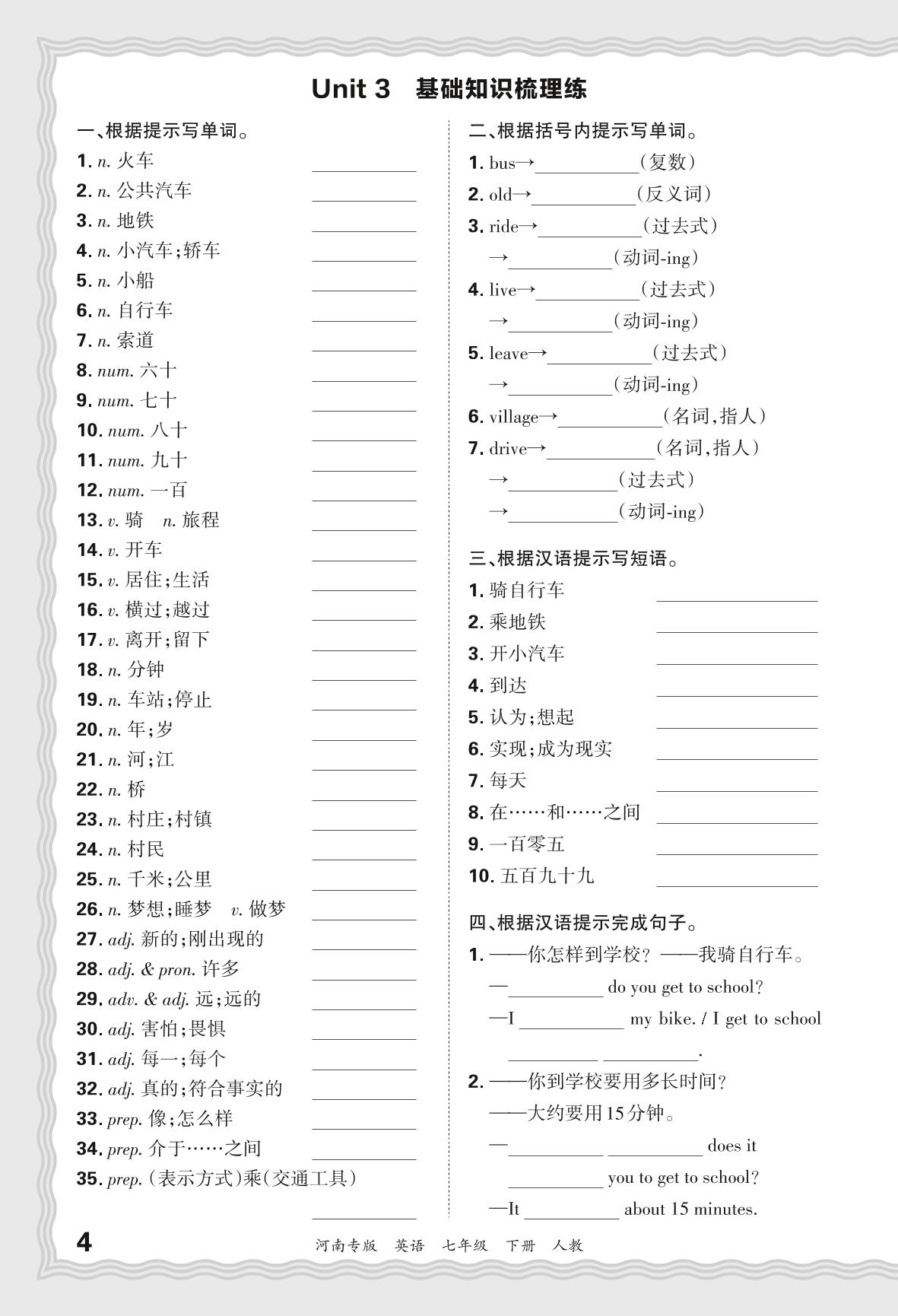 2024春下册七年级英语人教版 期末过课本河南版·Unit 3 基础知识梳理练