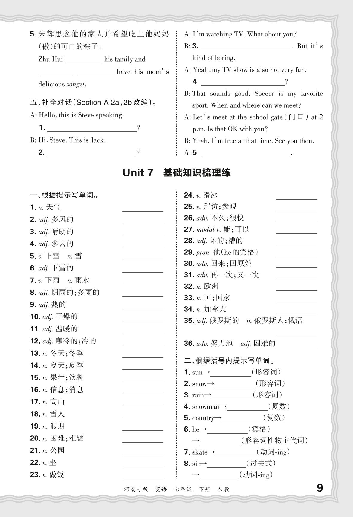 2024春下册七年级英语人教版 期末过课本河南版·Unit 7 基础知识梳理练