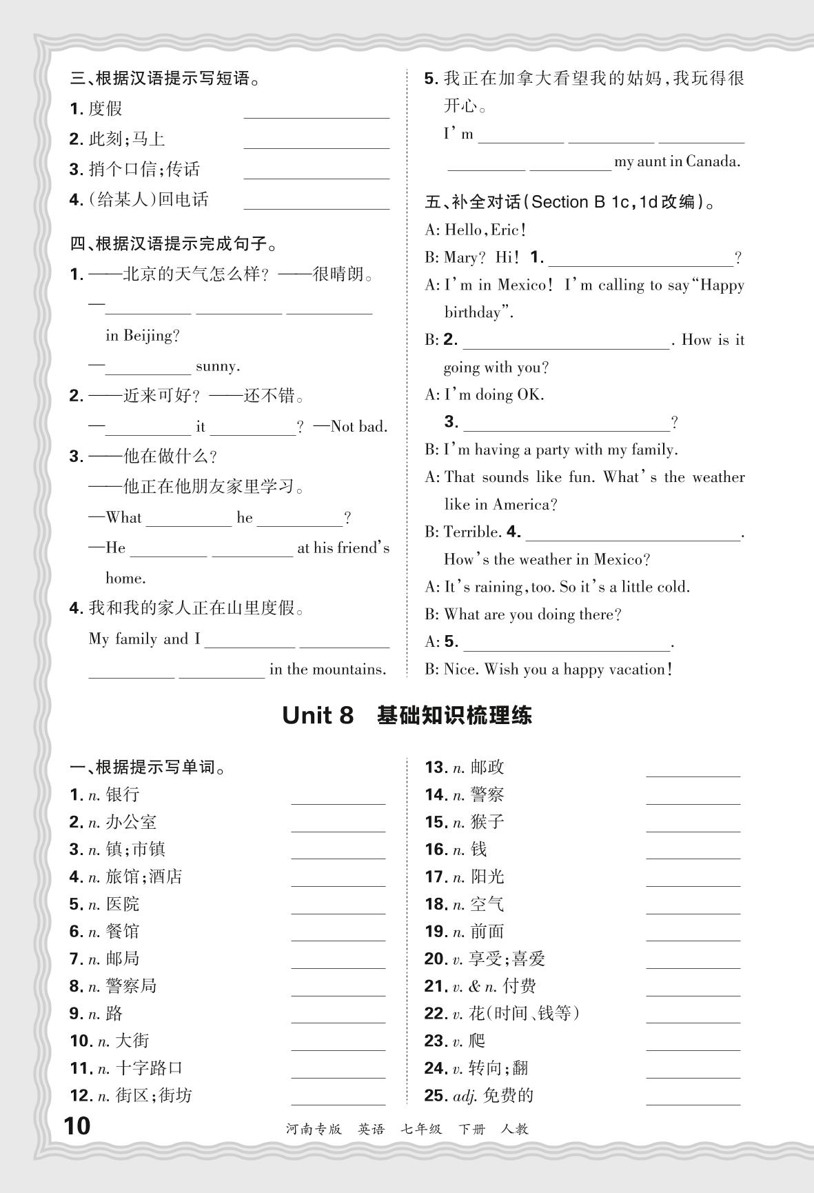 2024春下册七年级英语人教版 期末过课本河南版·Unit 8 基础知识梳理练