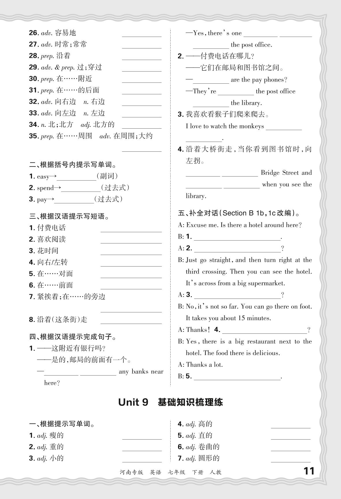 2024春下册七年级英语人教版 期末过课本河南版·Unit 9 基础知识梳理练