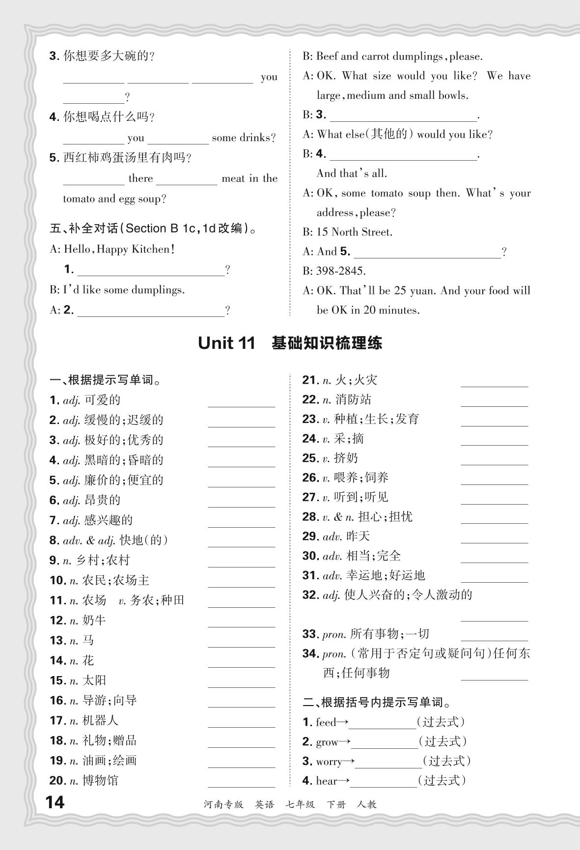 2024春下册七年级英语人教版 期末过课本河南版·Unit 11 基础知识梳理练