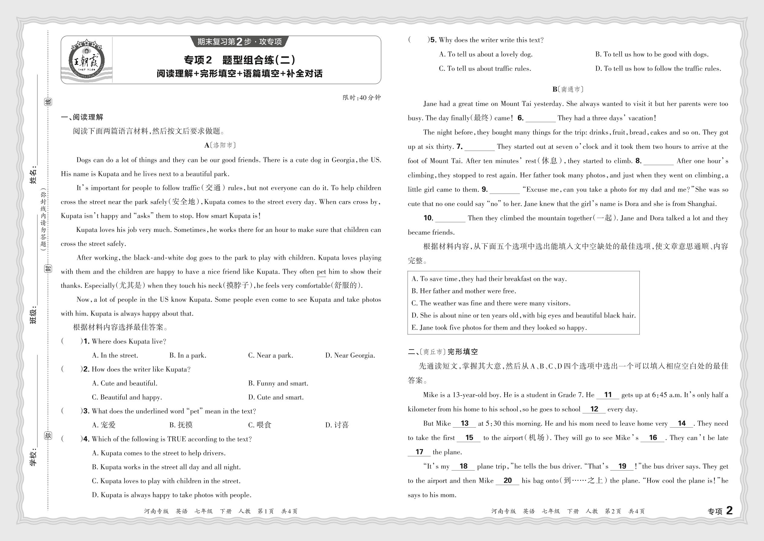 2024春下册七年级英语人教版 期末专项卷河南版·题型组合练(二)