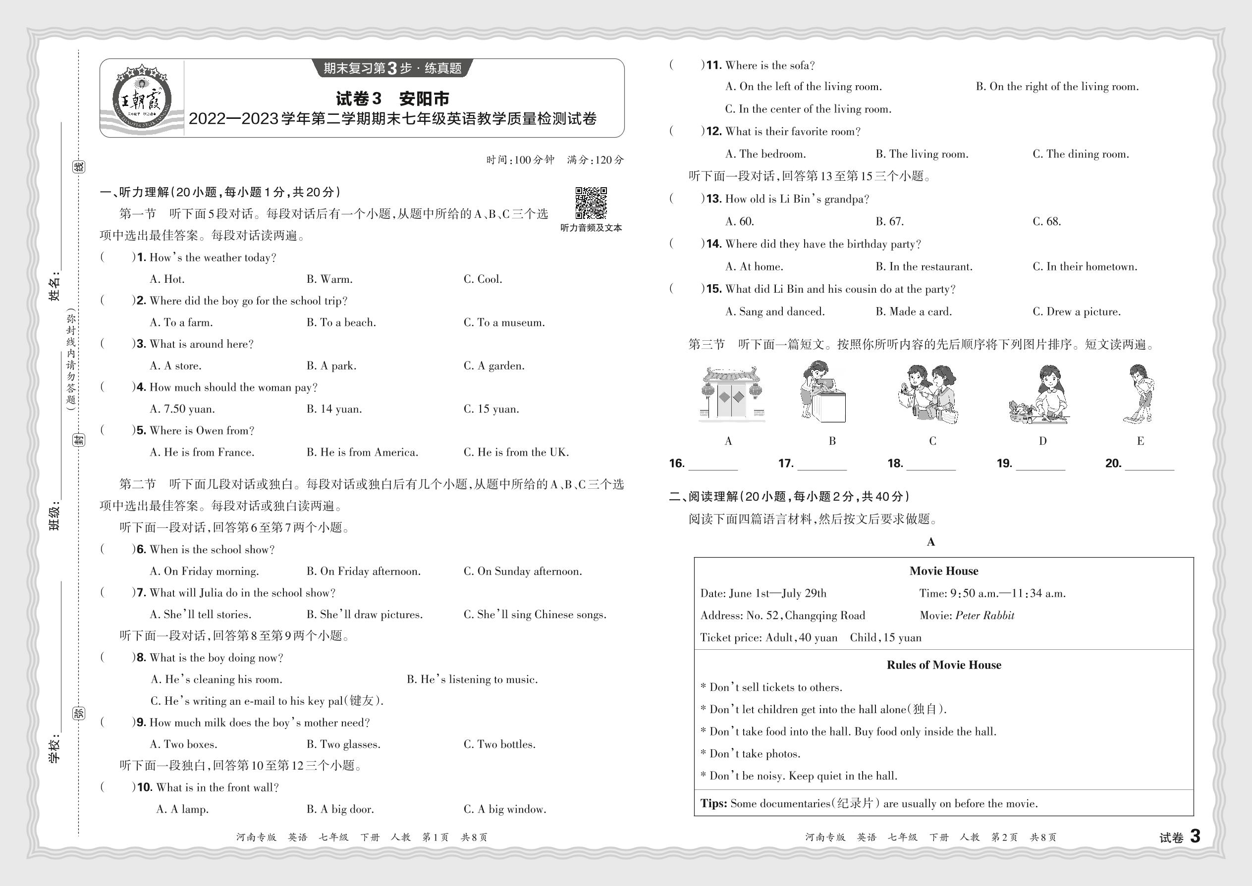 河南省安阳市2022-2023学年第二学期期末七年级英语教学质量检测试卷(人教版)【3】