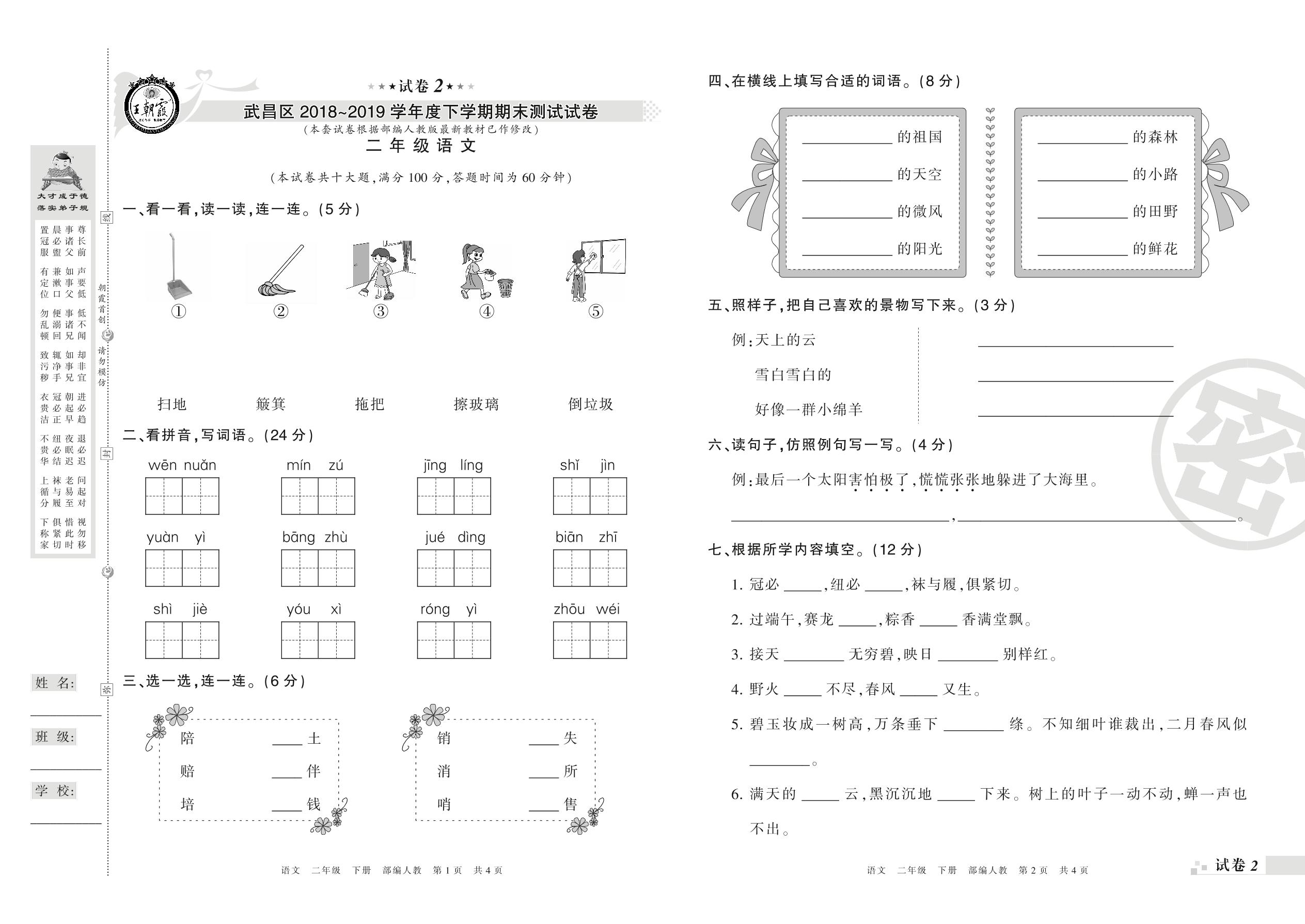 2018-2019学年第二学期武汉市武昌区二年级语文试卷(人教版)【2】