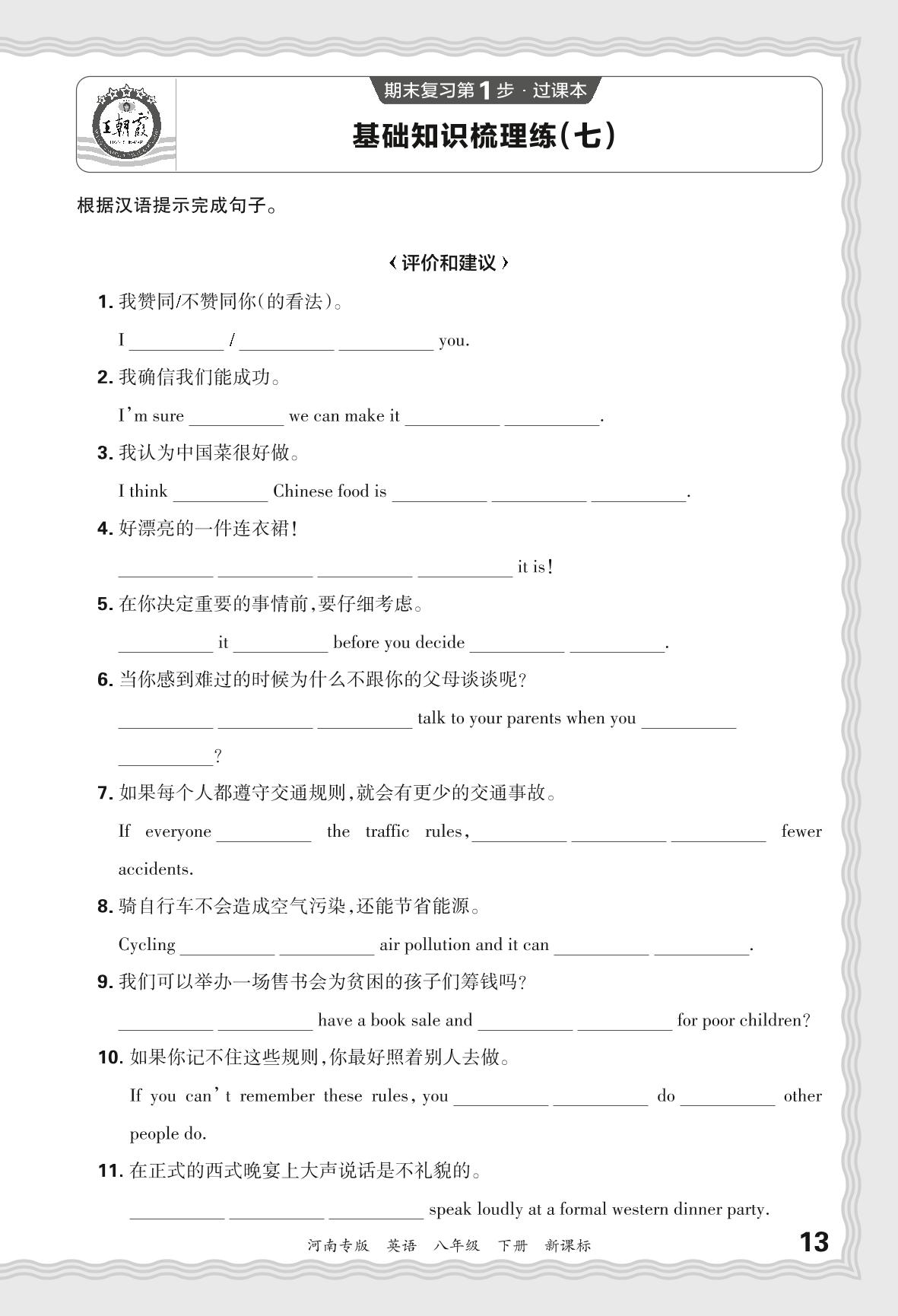 2024春下册八年级英语新课标版 期末过课本河南版·基础知识梳理练(七)