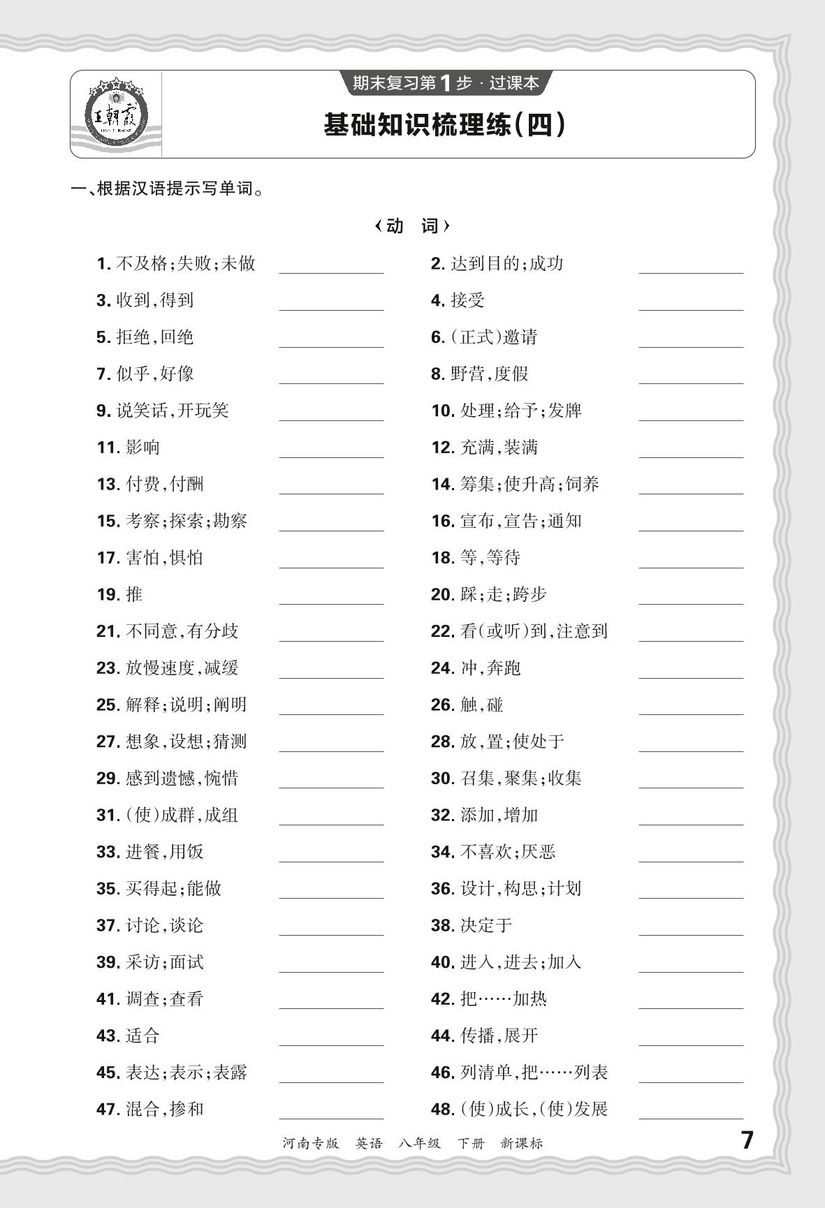 2024春下册八年级英语新课标版 期末过课本河南版·基础知识梳理练(四)