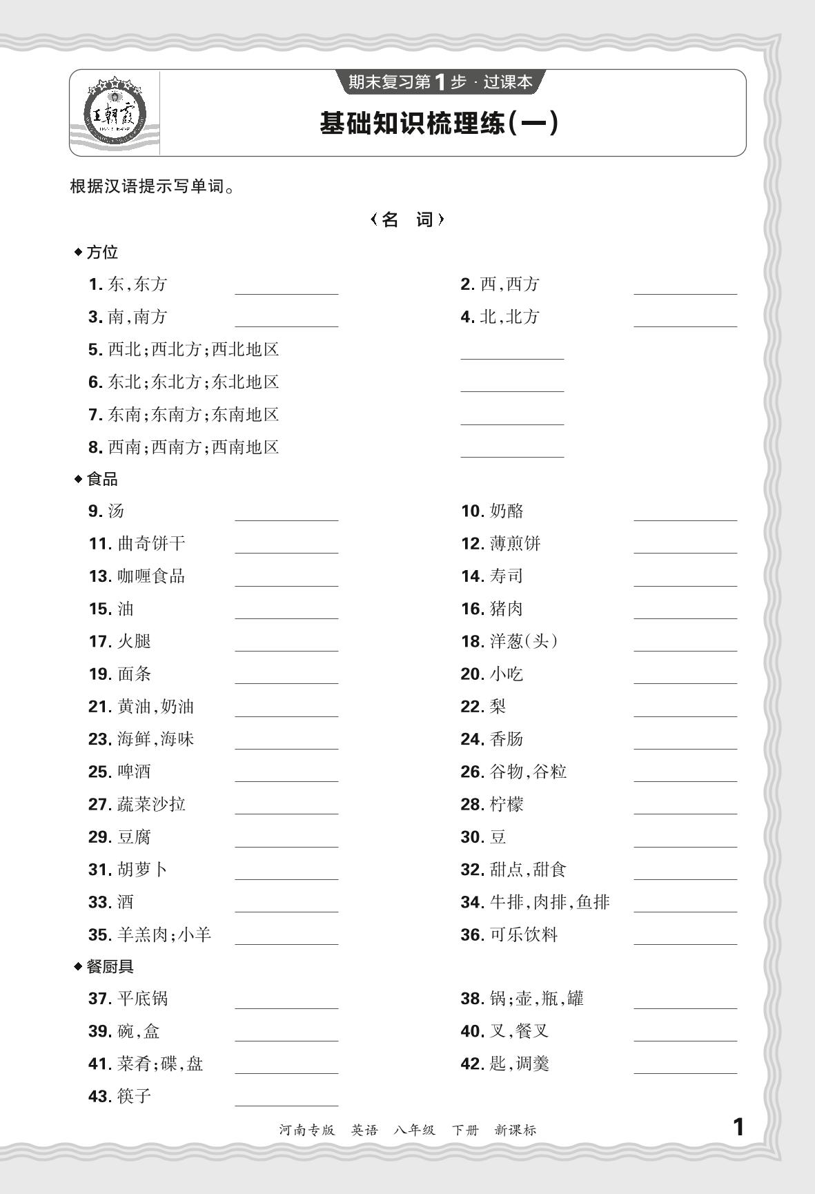 2024春下册八年级英语新课标版 期末过课本河南版·基础知识梳理练(一)