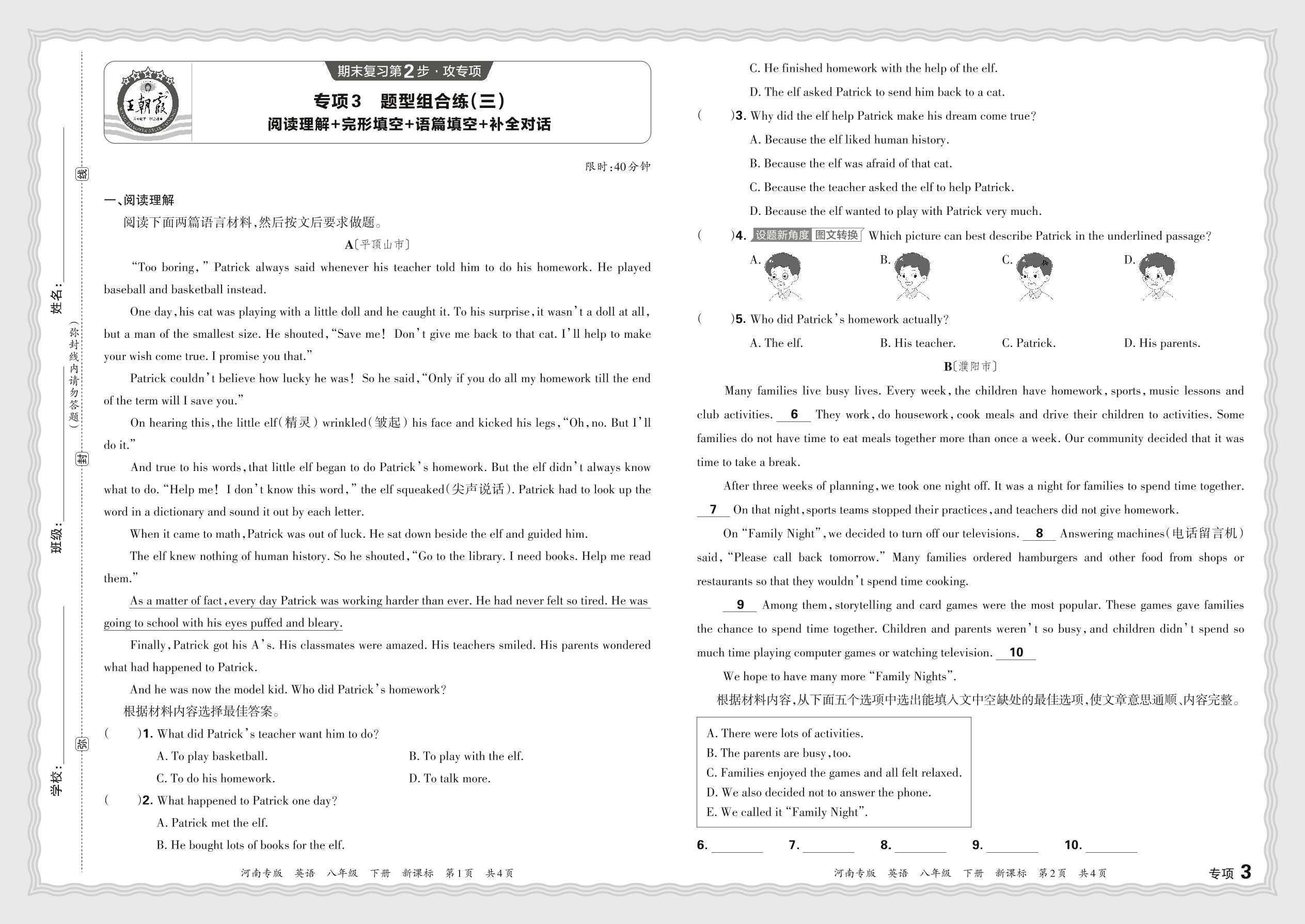 2024春下册八年级英语新课标版 期末专项卷河南版·题型组合练(三)