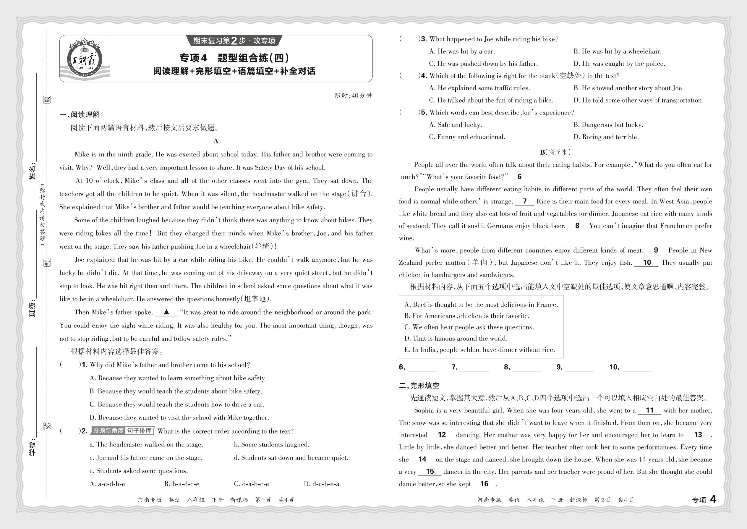 2024春下册八年级英语新课标版 期末专项卷河南版·题型组合练(四)