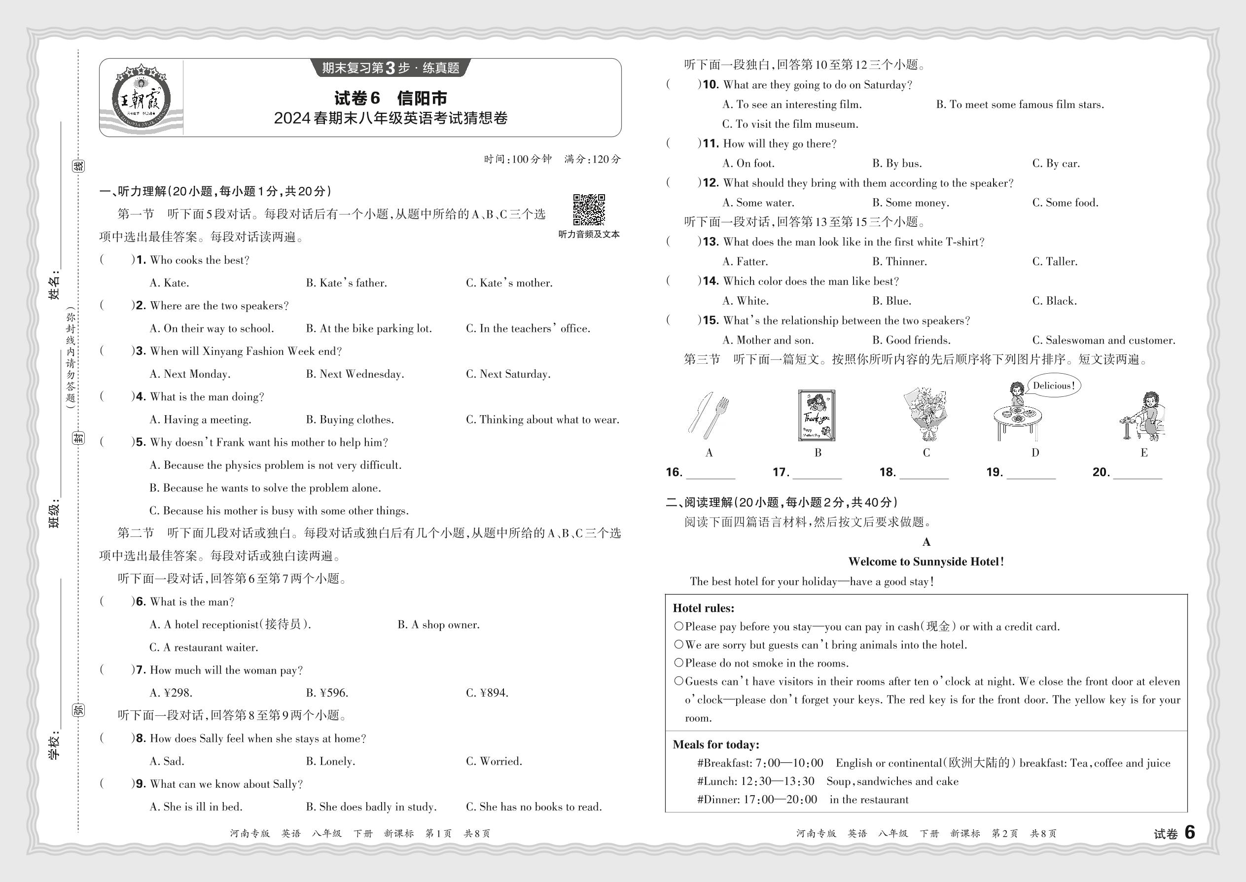 河南省信阳市2024春期末八年级英语考试猜想卷(新课标版)【6】