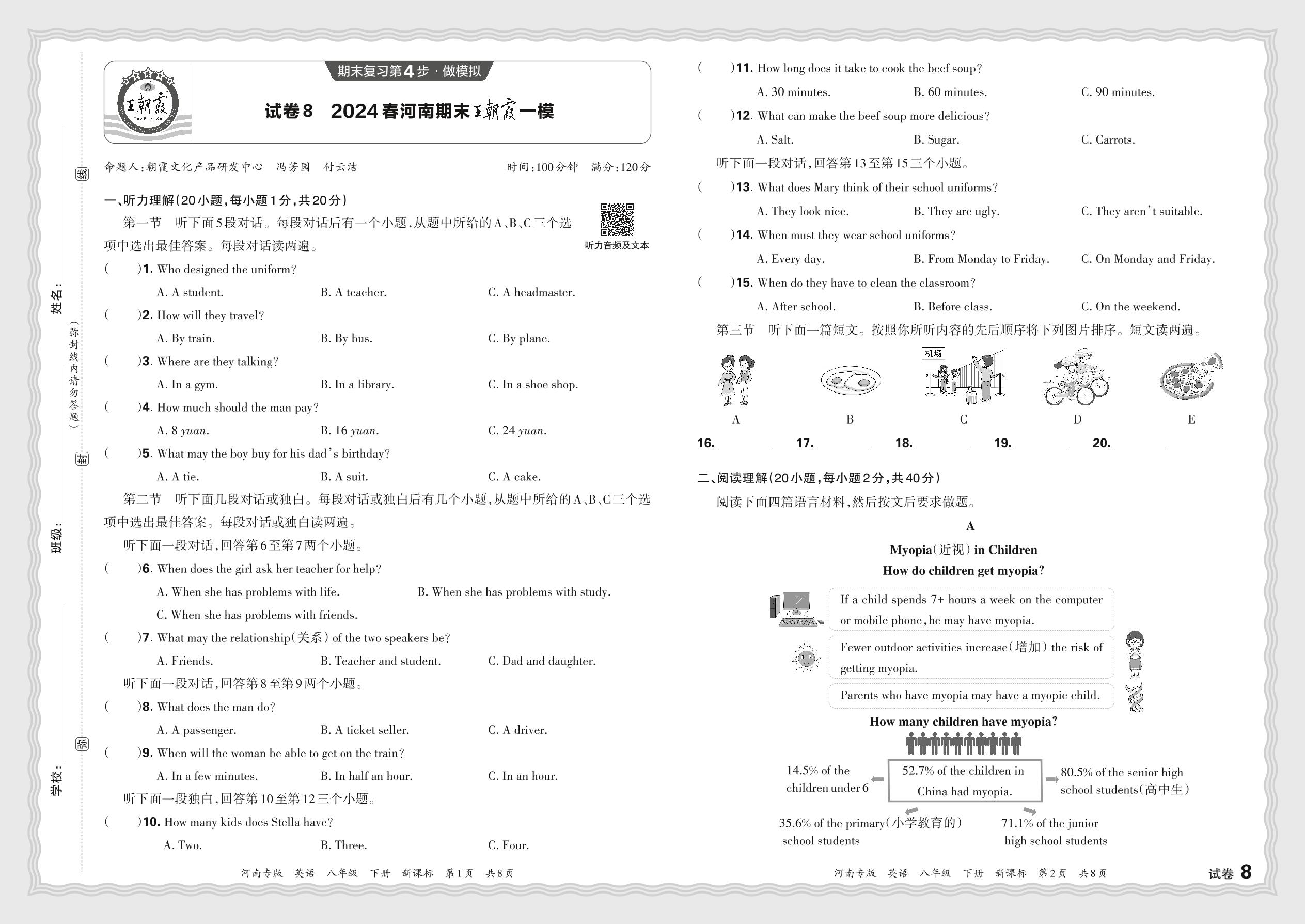 2024春下册八年级英语新课标版 河南期末王朝霞一模