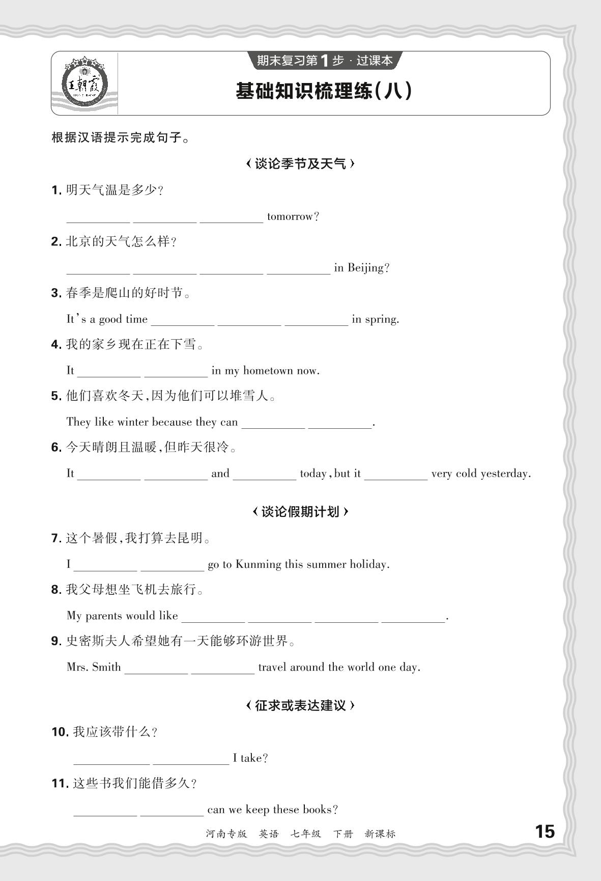 2024春下册七年级英语新课标版 期末过课本河南版·基础知识梳理练(八)