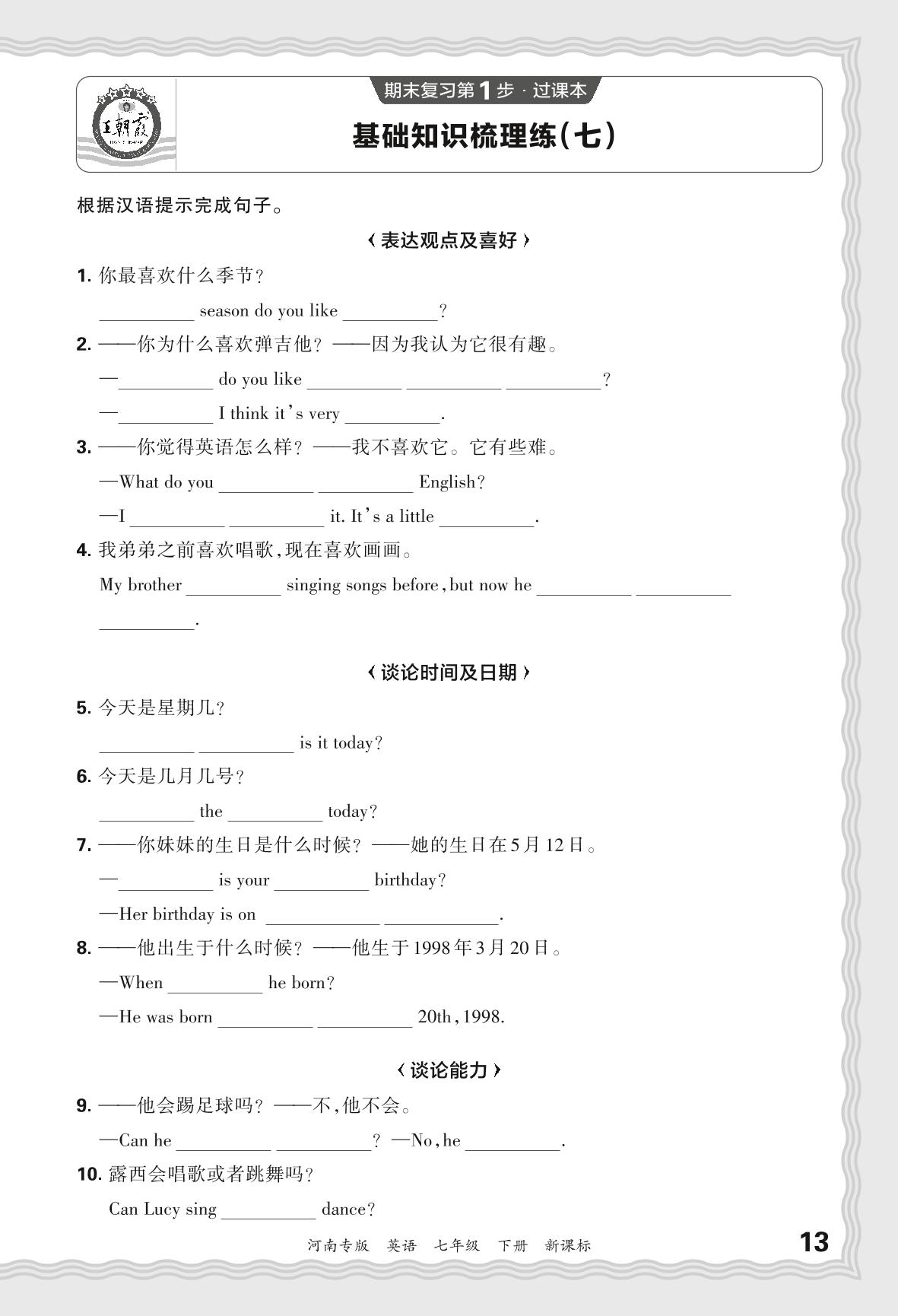 2024春下册七年级英语新课标版 期末过课本河南版·基础知识梳理练(七)