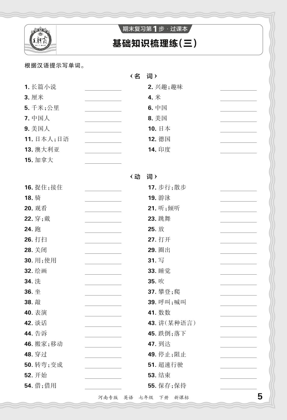 2024春下册七年级英语新课标版 期末过课本河南版·基础知识梳理练(三)