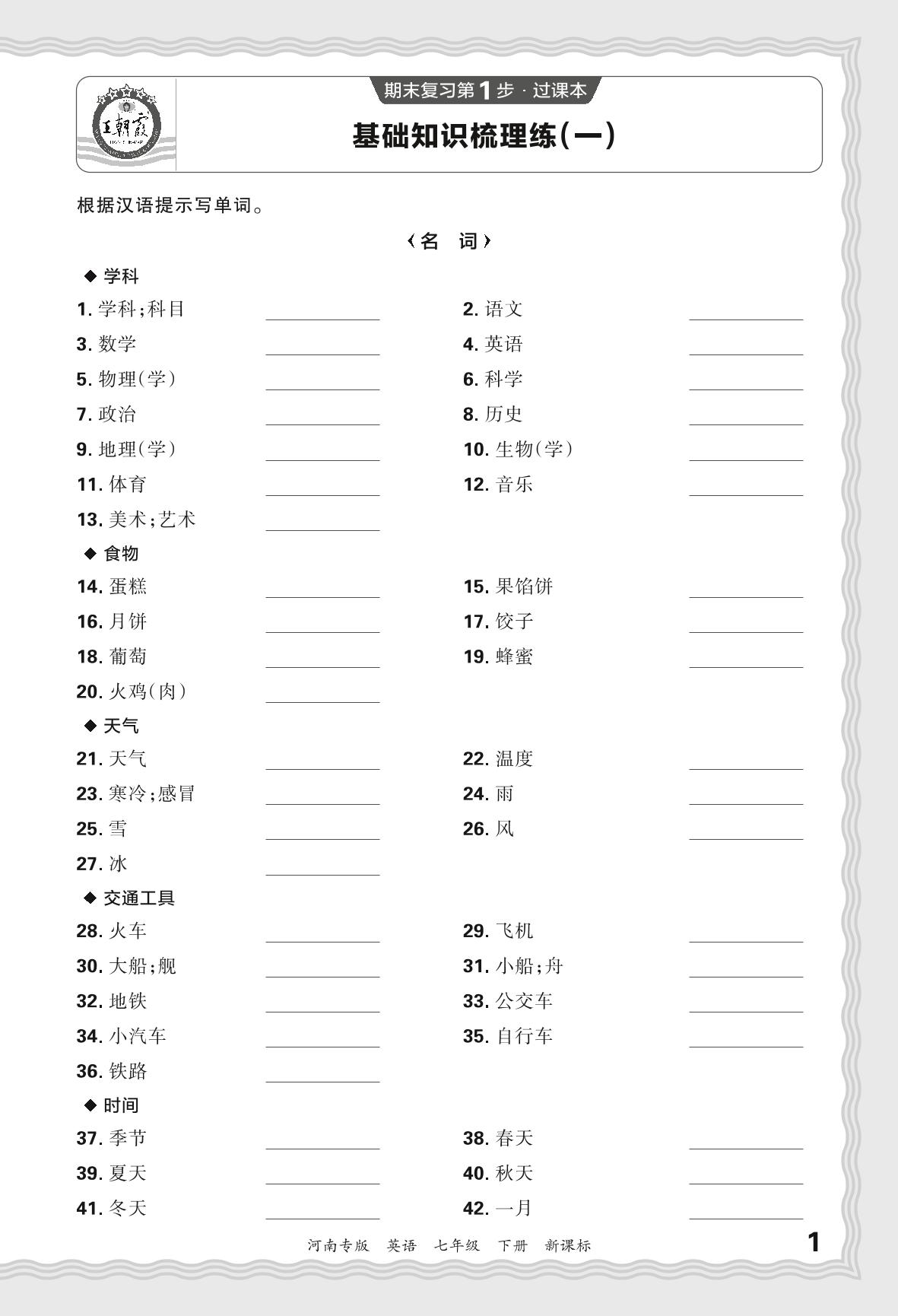 2024春下册七年级英语新课标版 期末过课本河南版·基础知识梳理练(一)