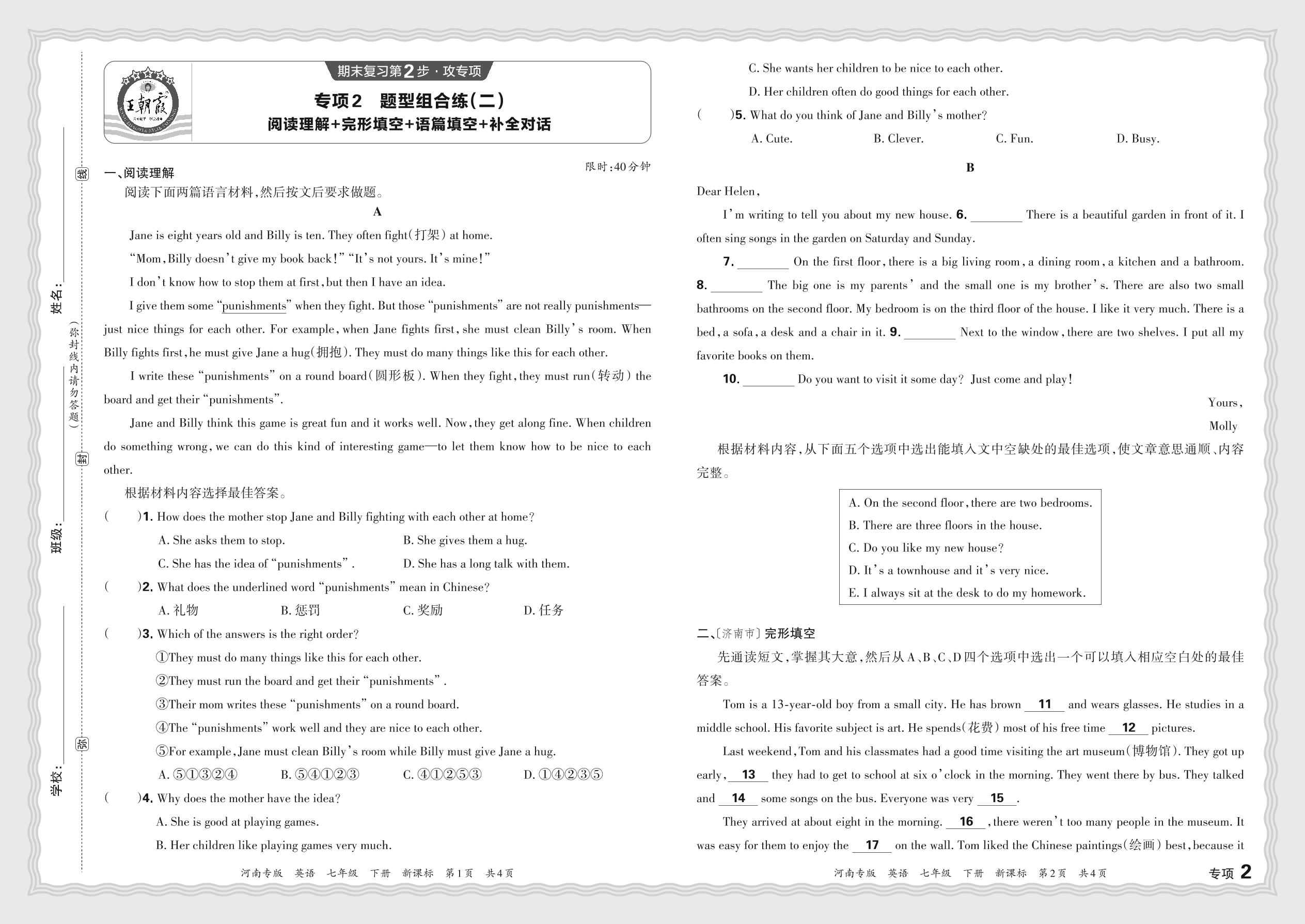 2024春下册七年级英语新课标版 期末专项卷河南版·题型组合练(二)