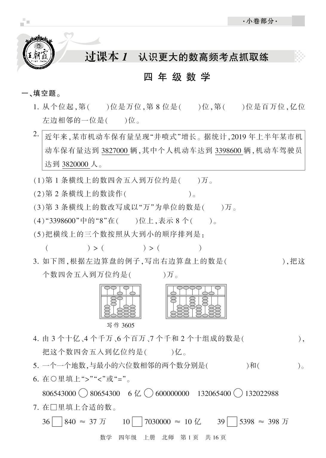 王朝霞期末过课本四年级上册数学(北师版)_R210804144716【0】
