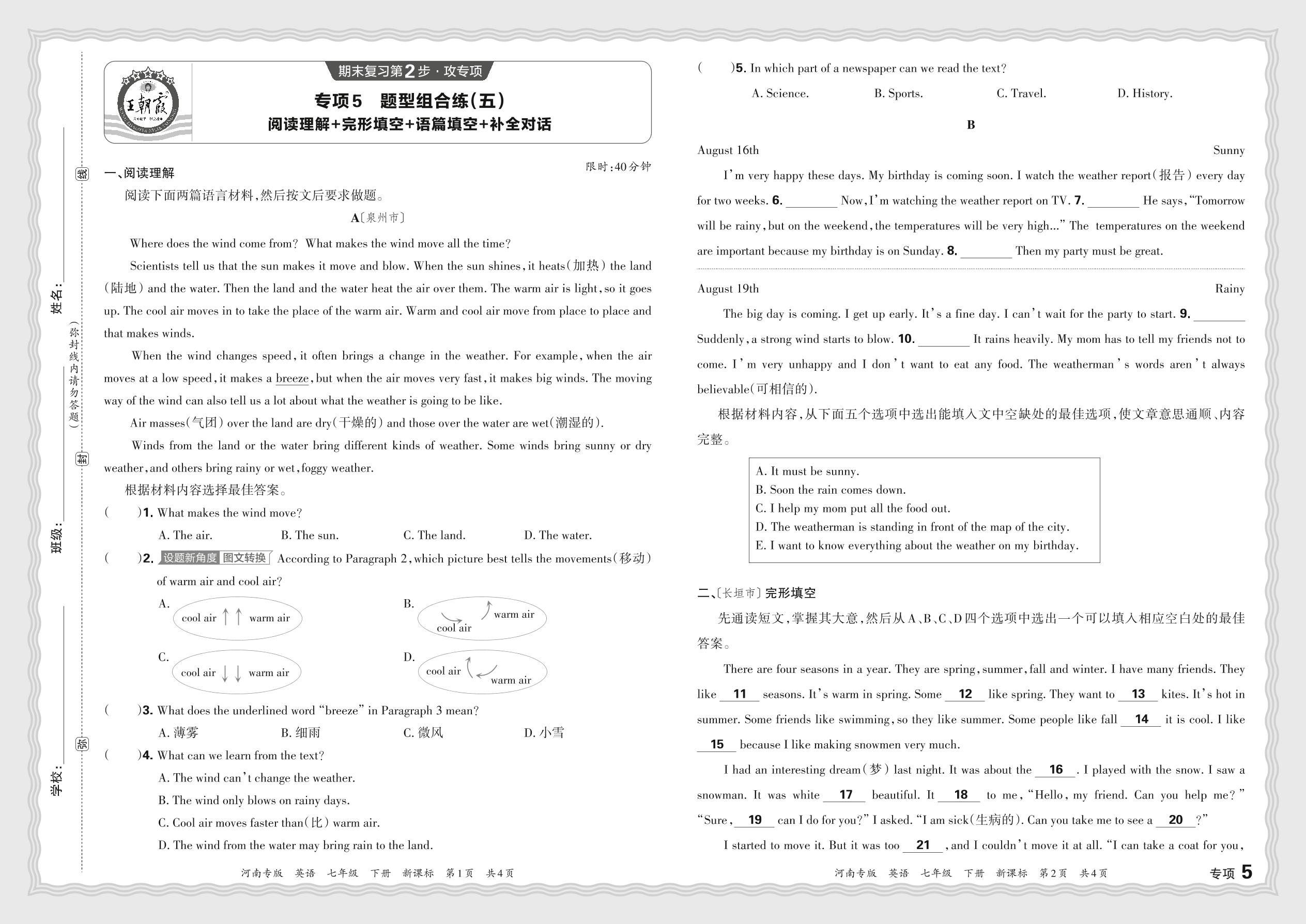 2024春下册七年级英语新课标版 期末专项卷河南版·题型组合练(五)
