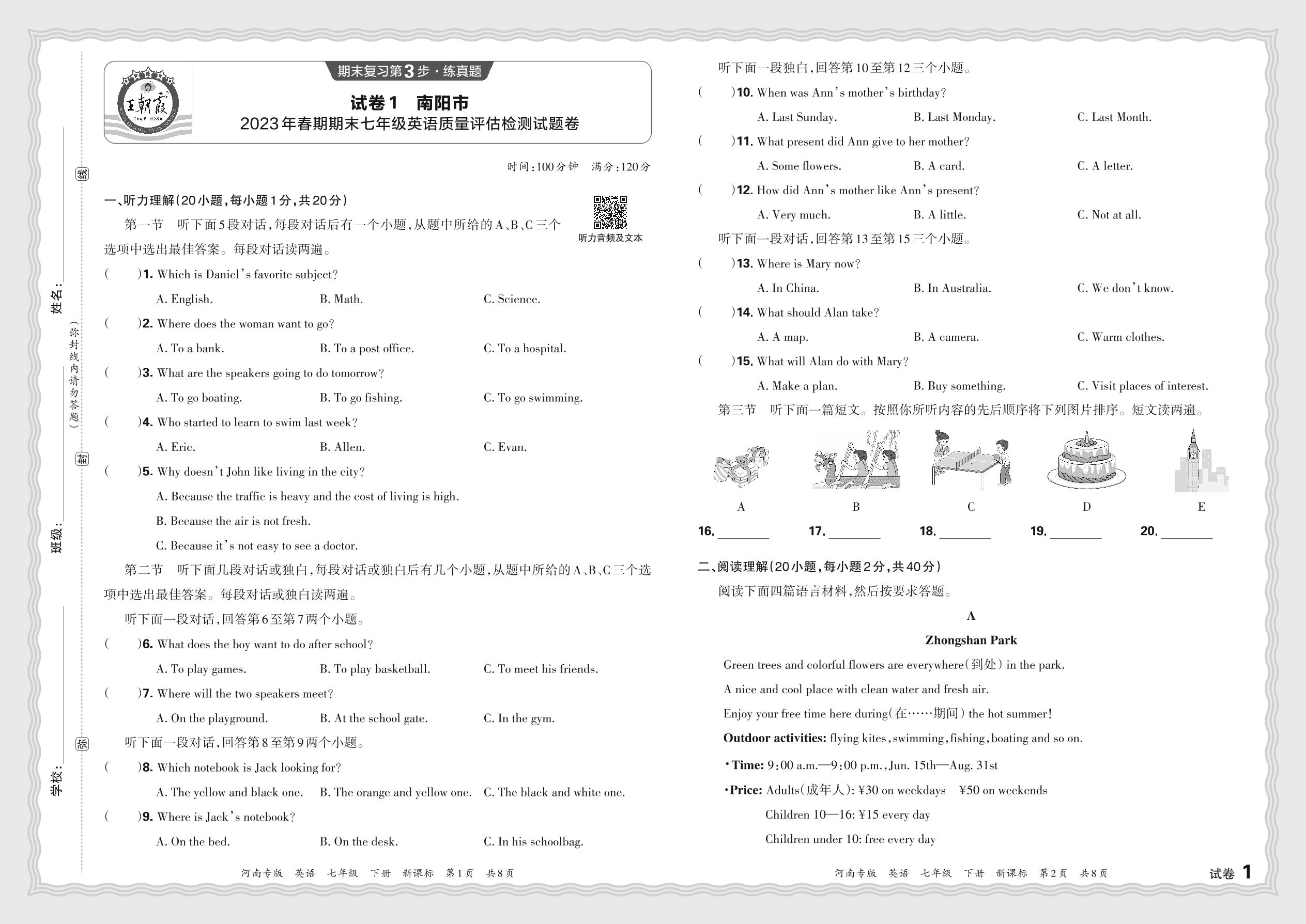河南省南阳市2023年春期期末七年级英语质量评估检测试卷(新课标版)【1】