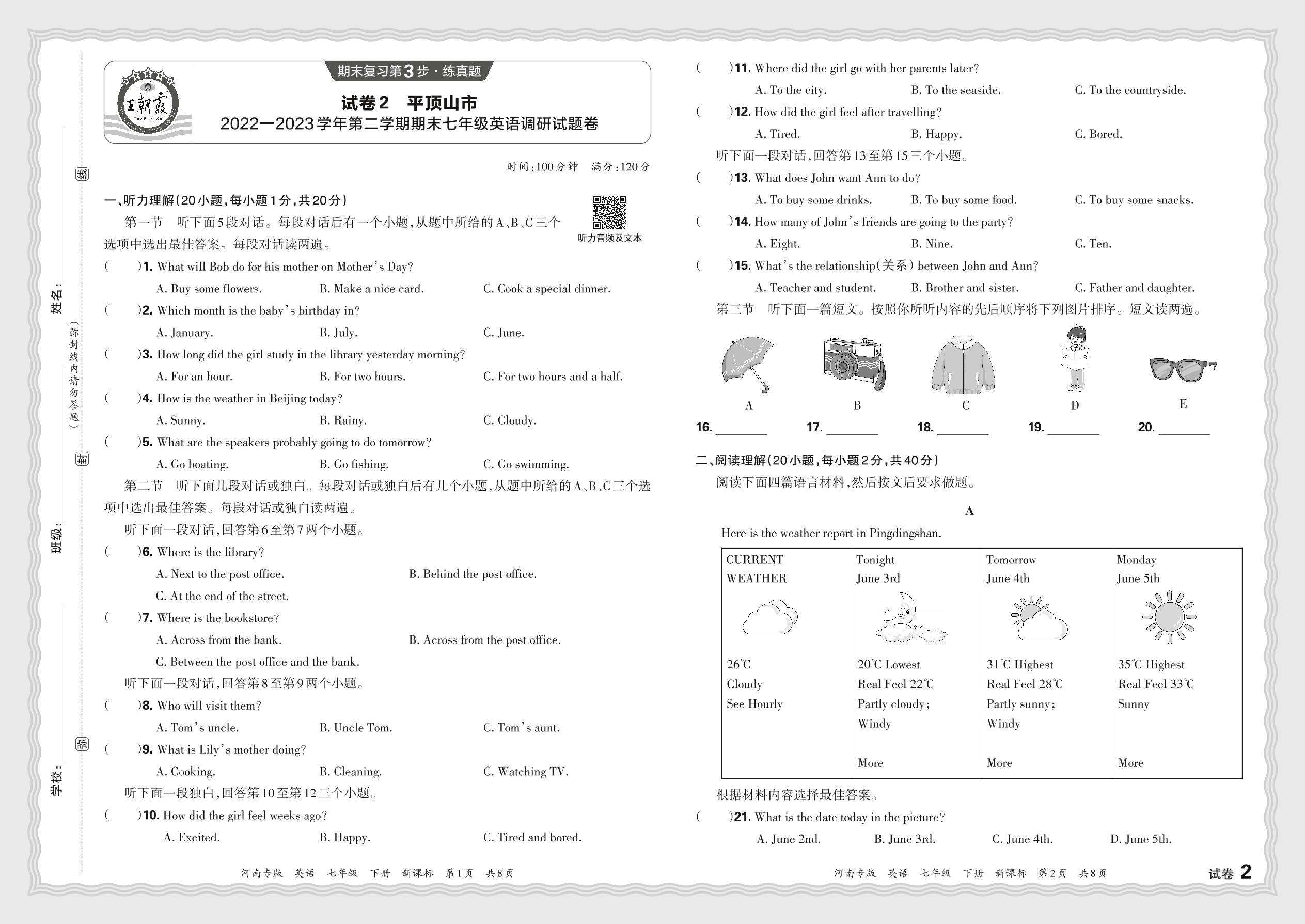 河南省平顶山市2022-2023学年第二学期期末七年级英语调研试题卷(新课标版)【2】