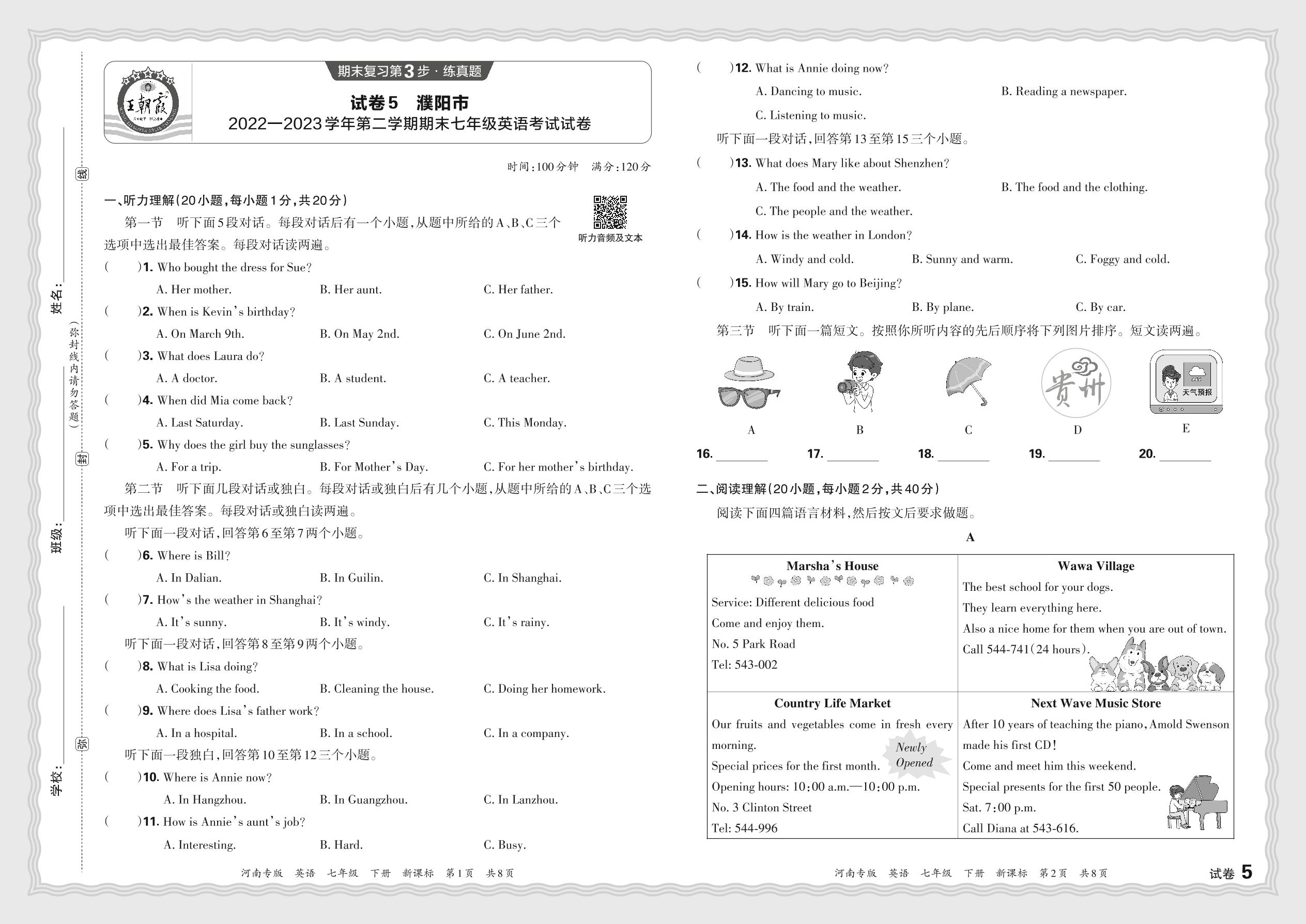河南省濮阳市2022-2023学年第二学期期末七年级英语考试试卷(新课标版)【5】