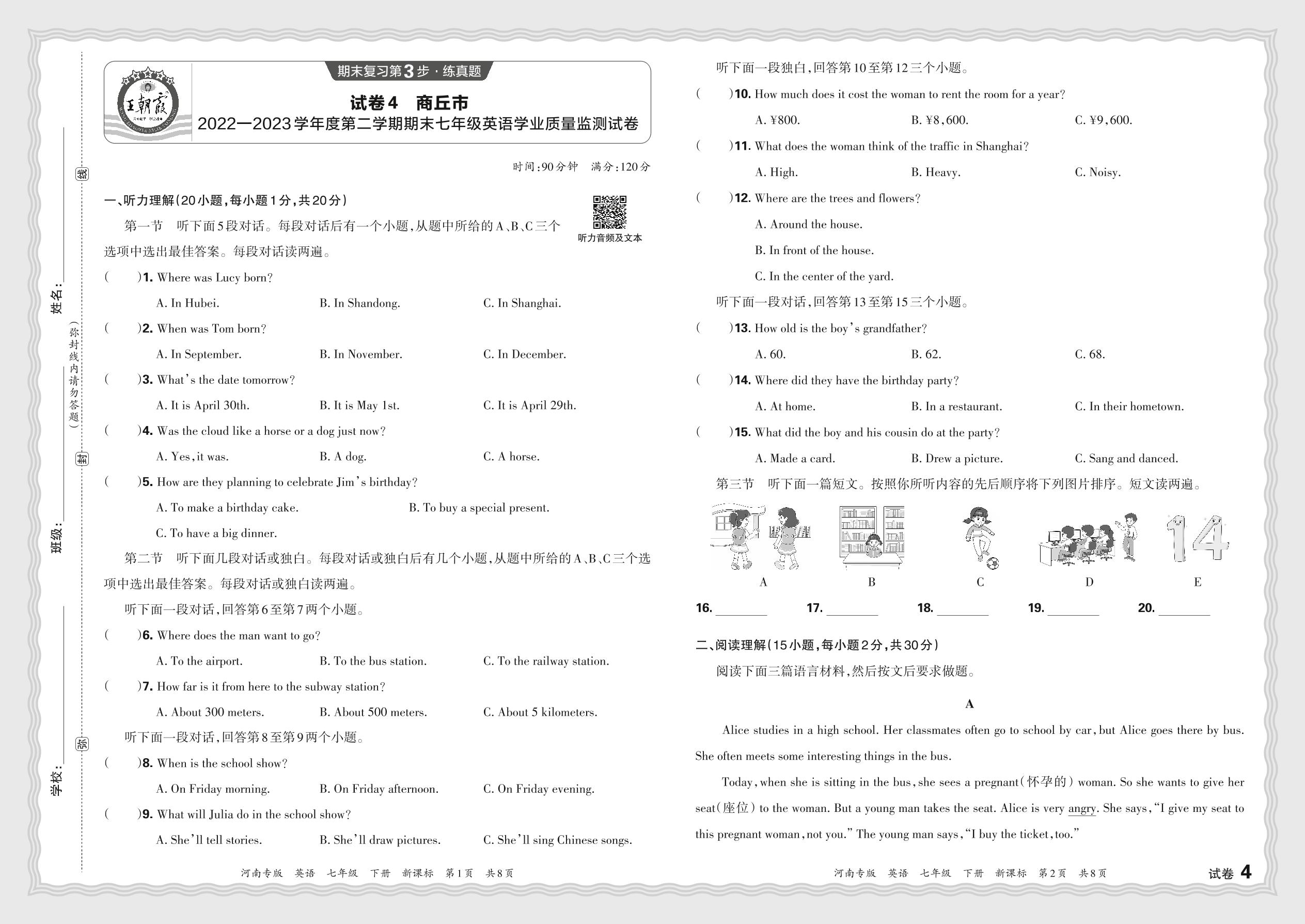 河南省商丘市2022-2023学年度第二学期期末七年级英语学业质量监测试卷(新课标版)【4】