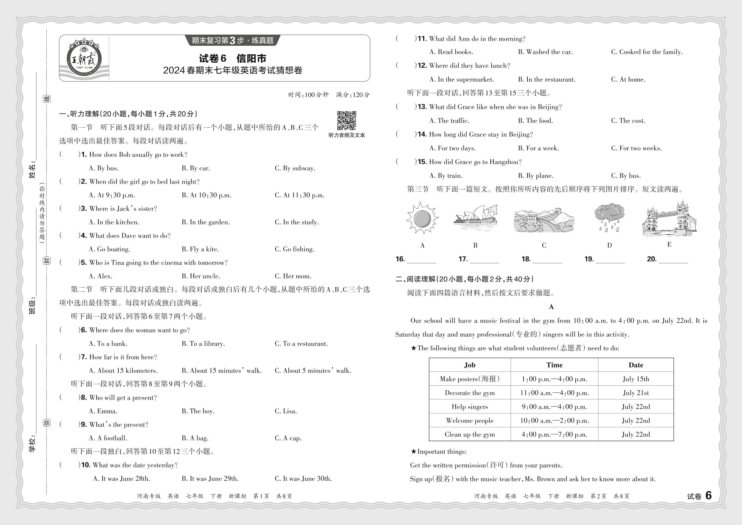河南省信阳市2024春期末七年级英语考试猜想卷(新课标版)【6】