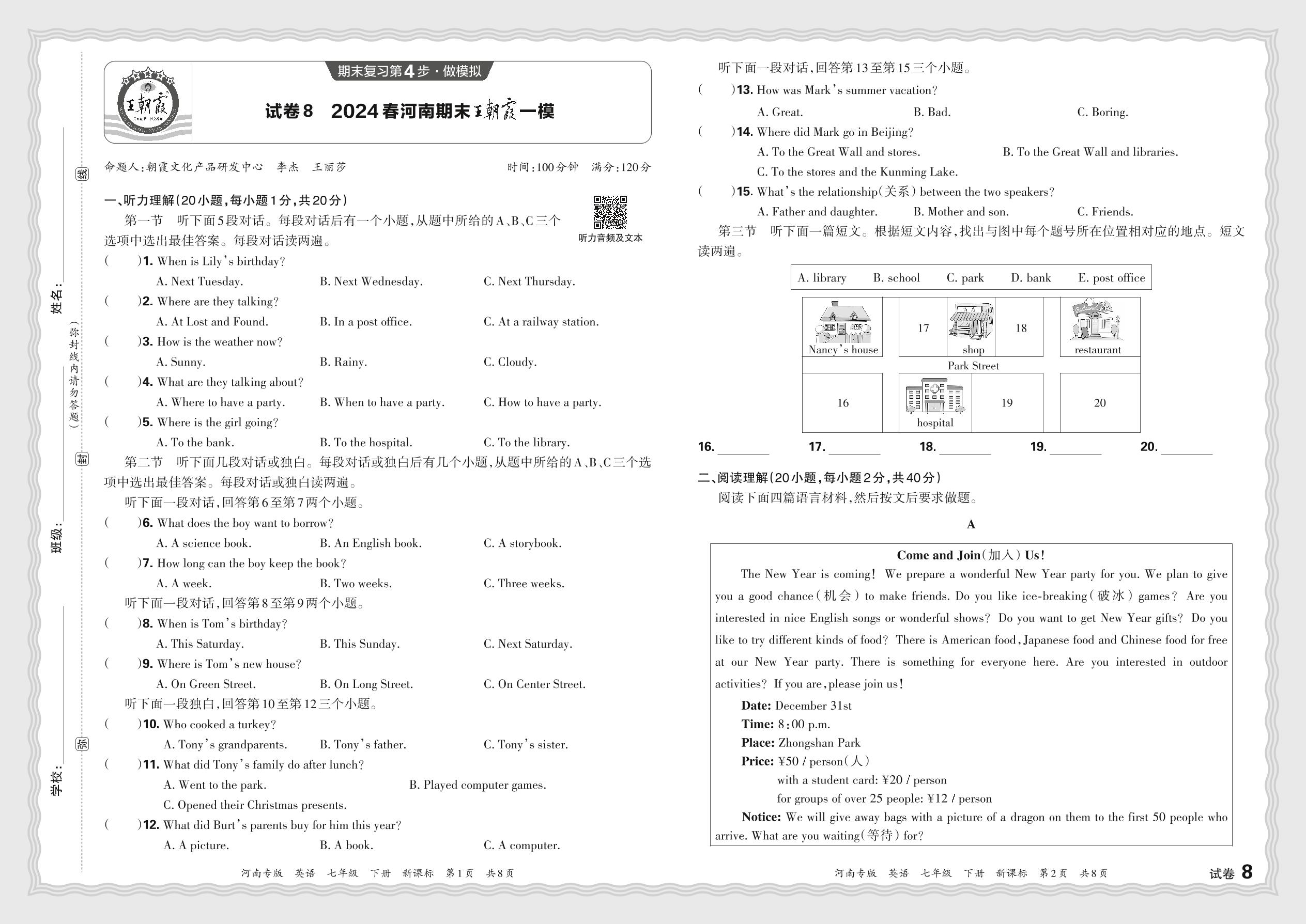 2024春下册七年级英语新课标版 河南期末王朝霞一模