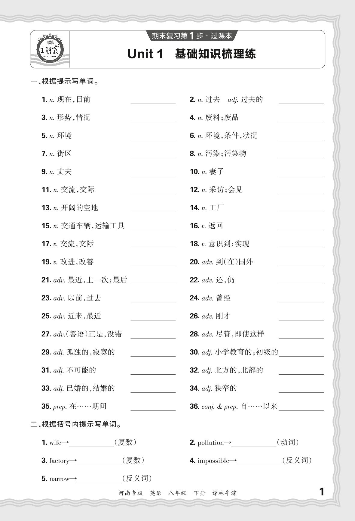 2024春下册八年级英语译林牛津版 期末过课本河南版·Unit 1 基础知识梳理练