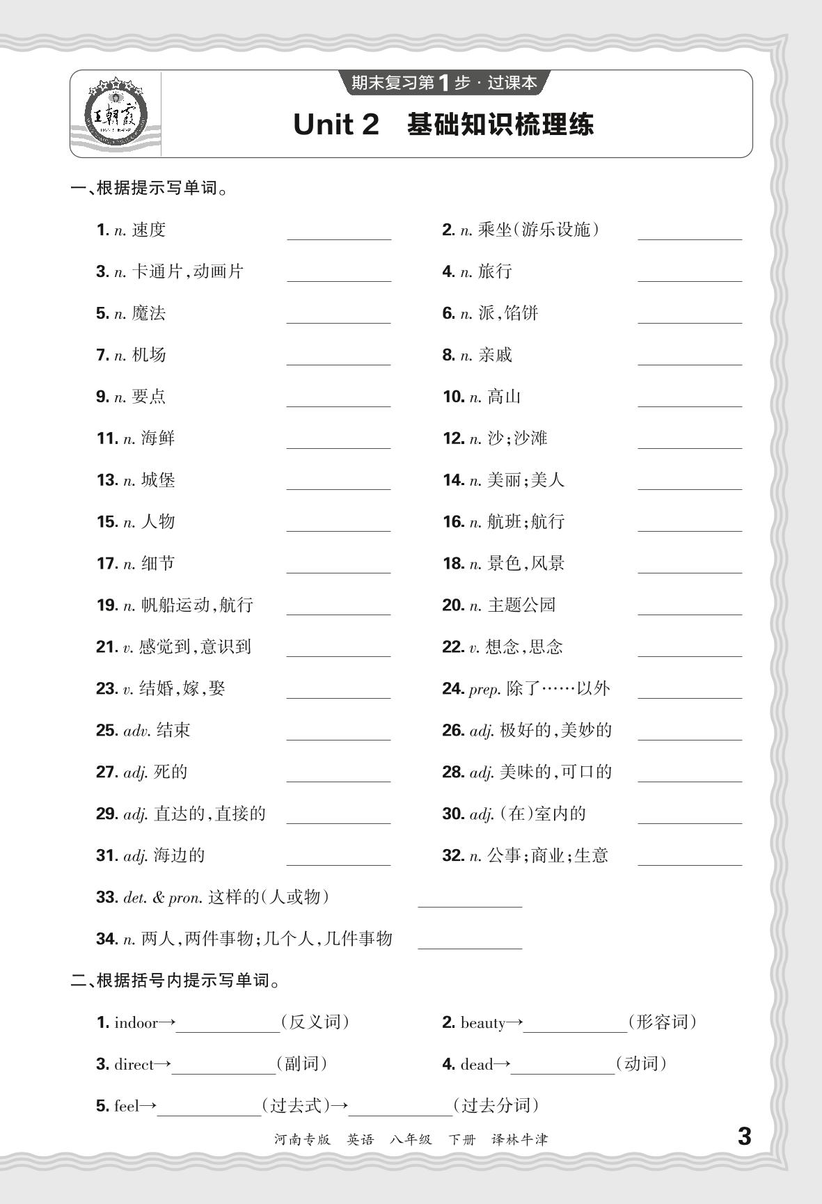 2024春下册八年级英语译林牛津版 期末过课本河南版·Unit 2 基础知识梳理练
