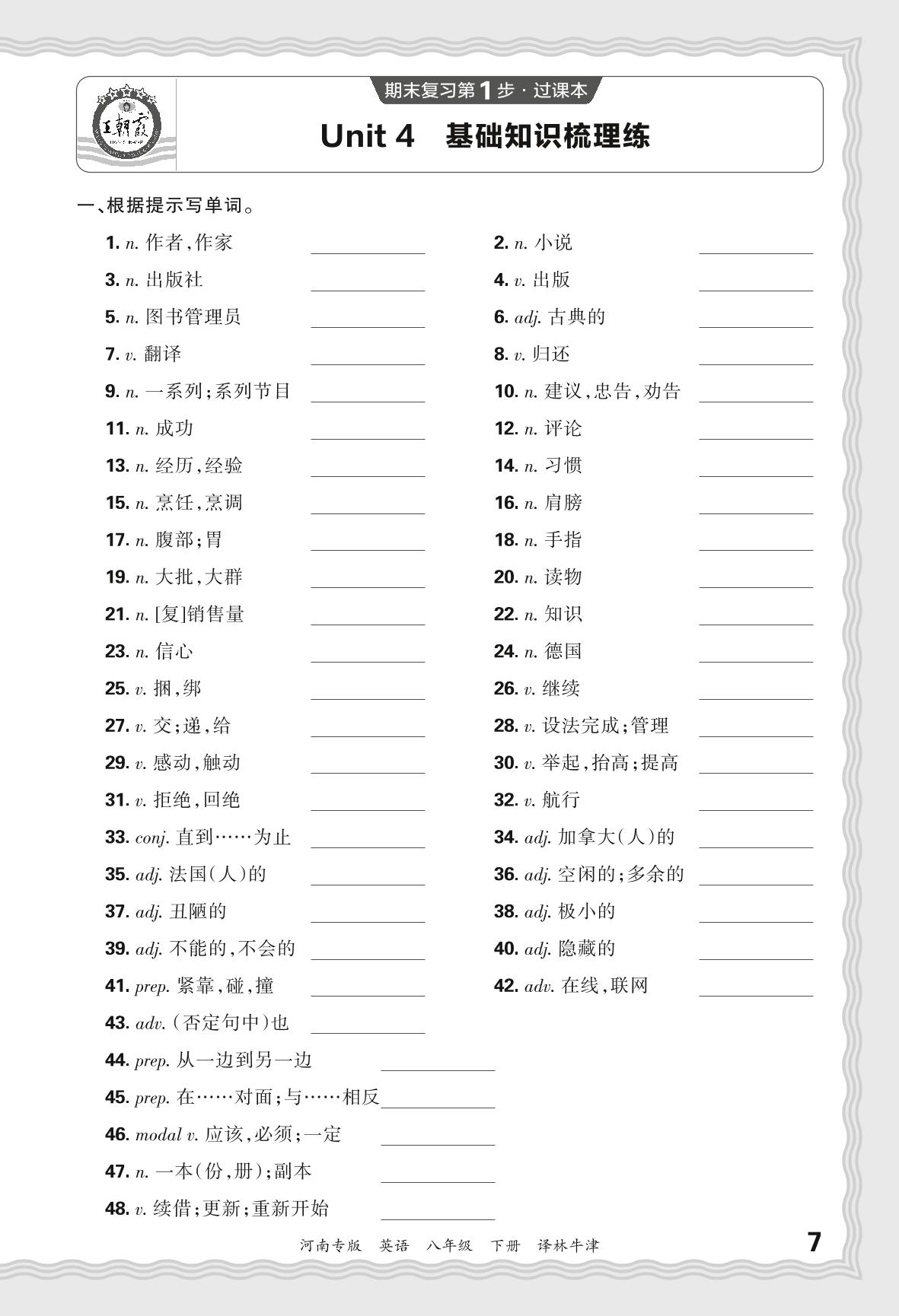 2024春下册八年级英语译林牛津版 期末过课本河南版·Unit 4 基础知识梳理练