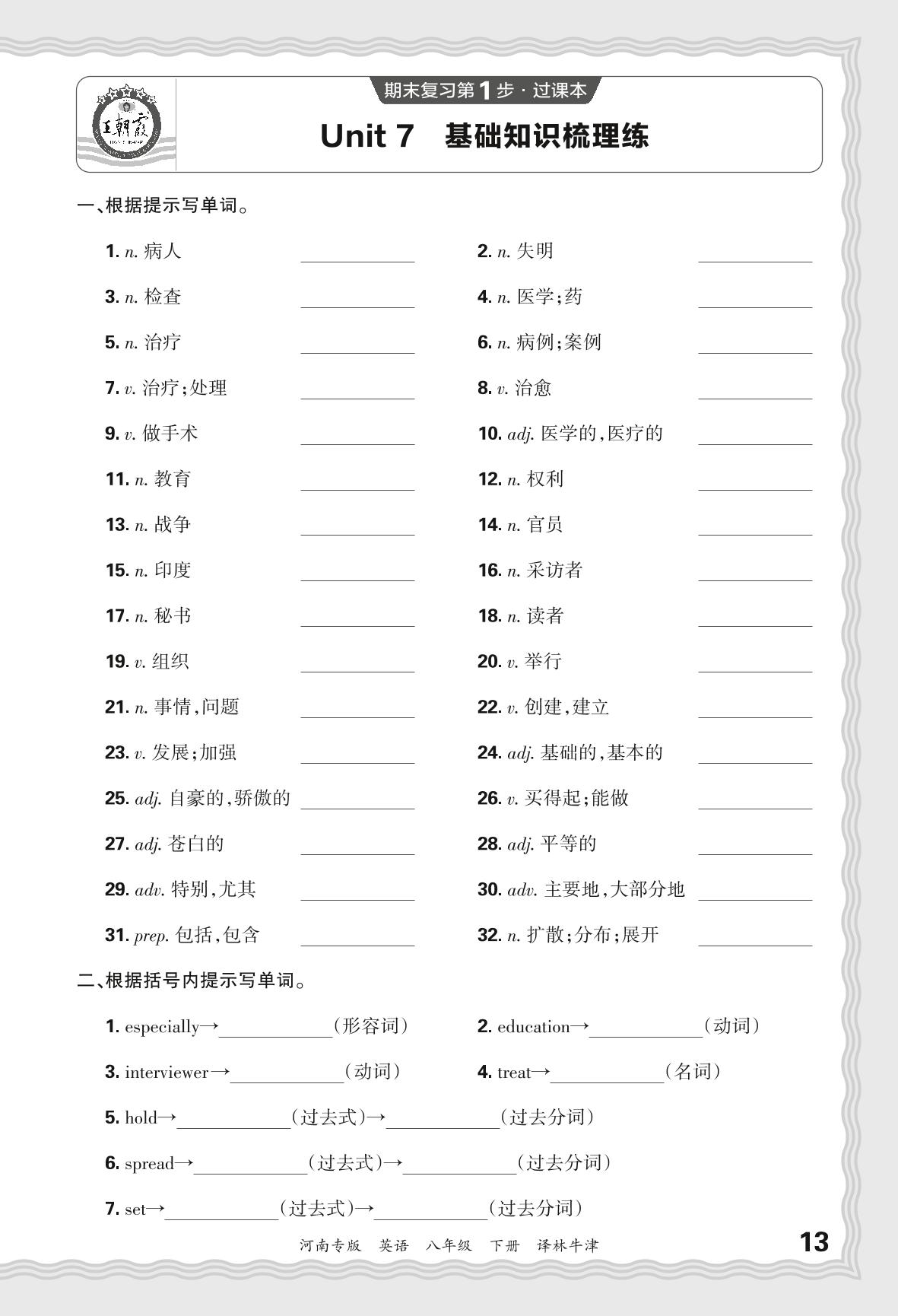 2024春下册八年级英语译林牛津版 期末过课本河南版·Unit 7 基础知识梳理练