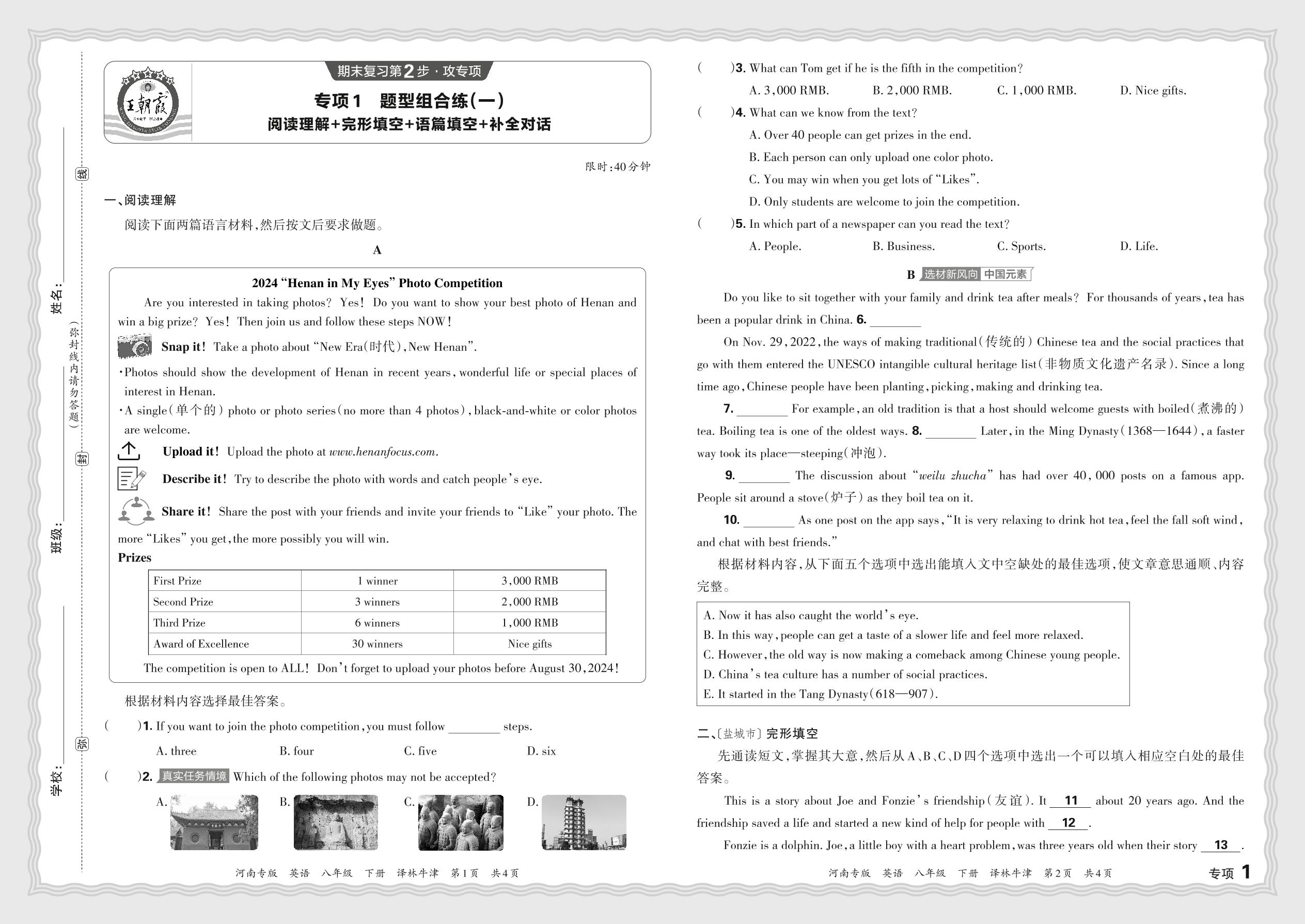 2024春下册八年级英语译林牛津版 期末专项卷河南版·题型组合练(一)