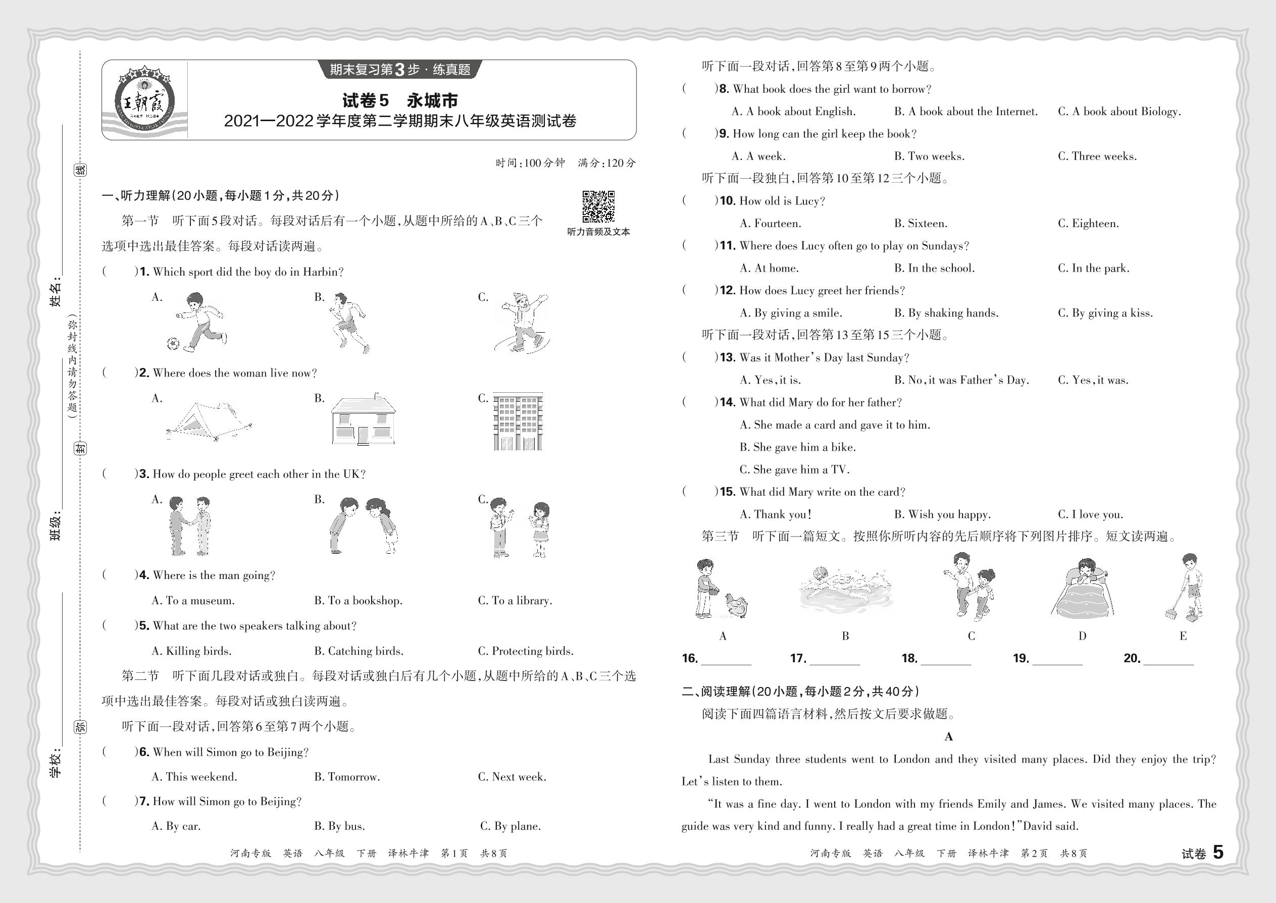 河南省永城市2021-2022学年度第二学期期末八年级英语测试卷(译林牛津版)【5】