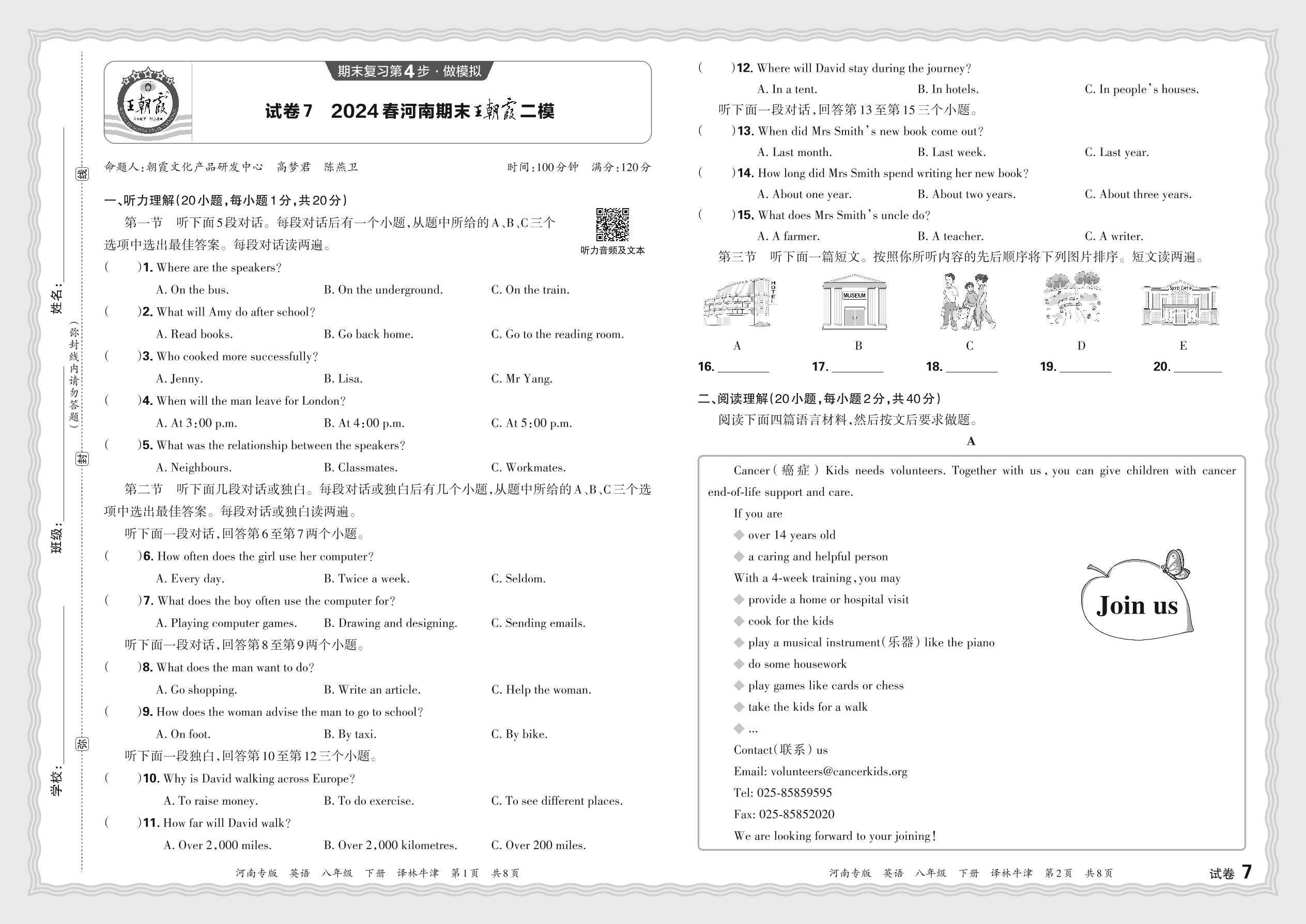2024春下册八年级英语译林牛津版 河南期末王朝霞二模
