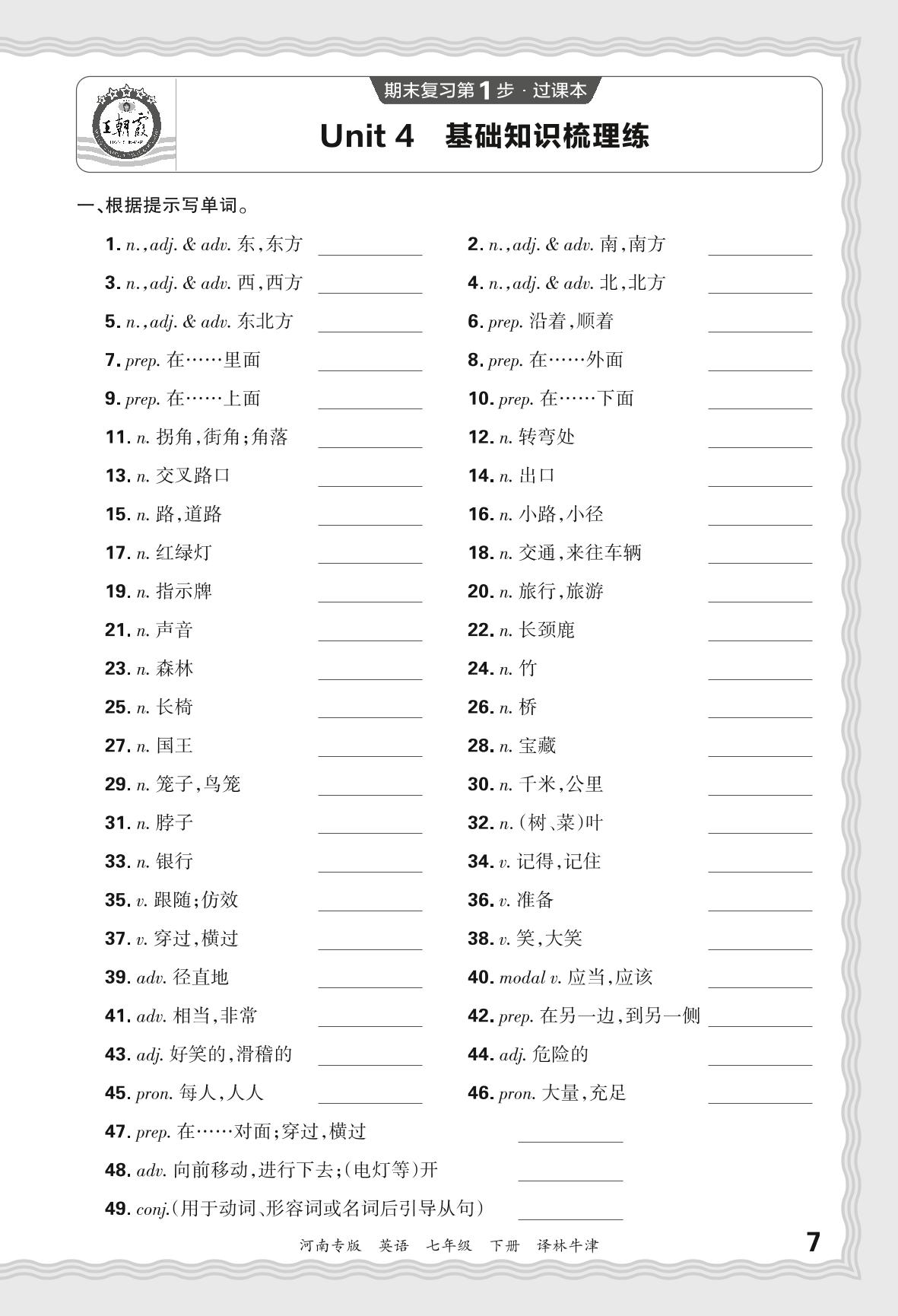 2024春下册七年级英语译林牛津版 期末过课本河南版·Unit 4 基础知识梳理练