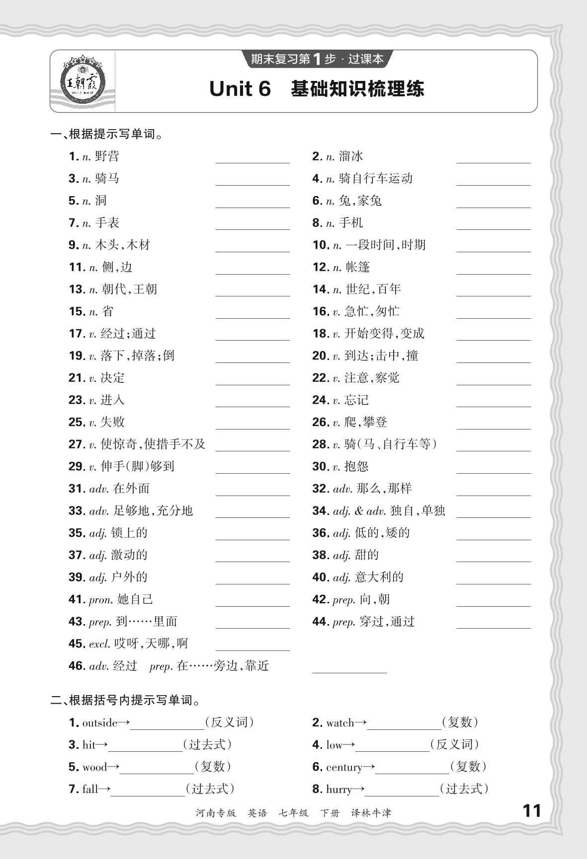 2024春下册七年级英语译林牛津版 期末过课本河南版·Unit 6 基础知识梳理练