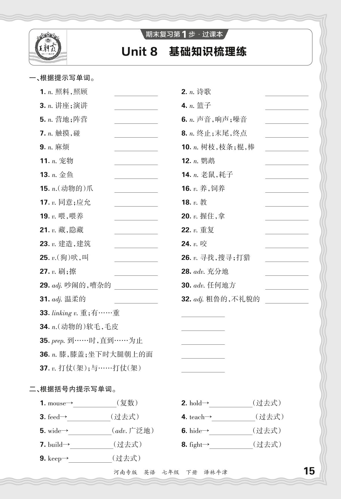 2024春下册七年级英语译林牛津版 期末过课本河南版·Unit 8 基础知识梳理练
